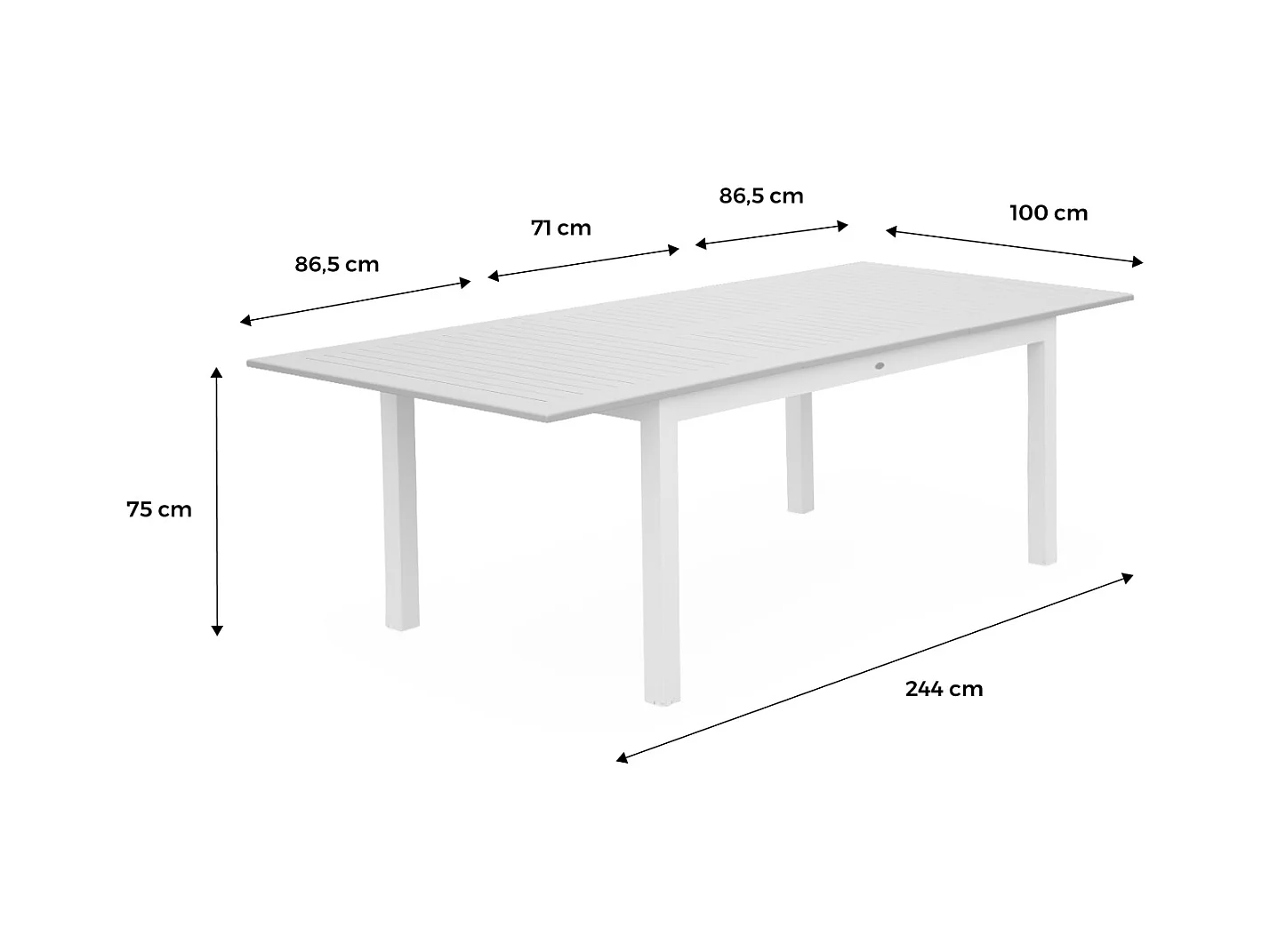 Mesa de jardín de aluminio blanco y gris para 4/8 pers.