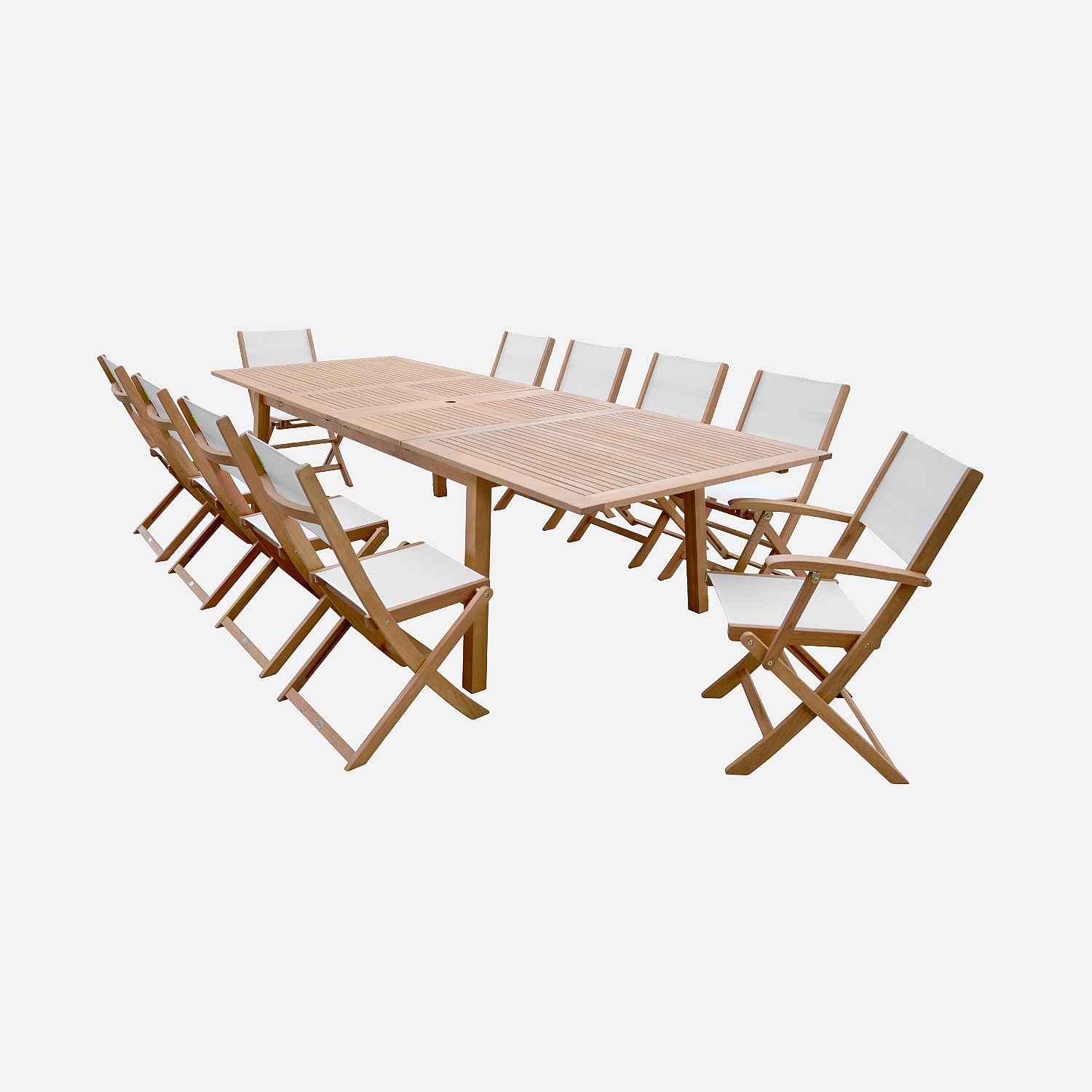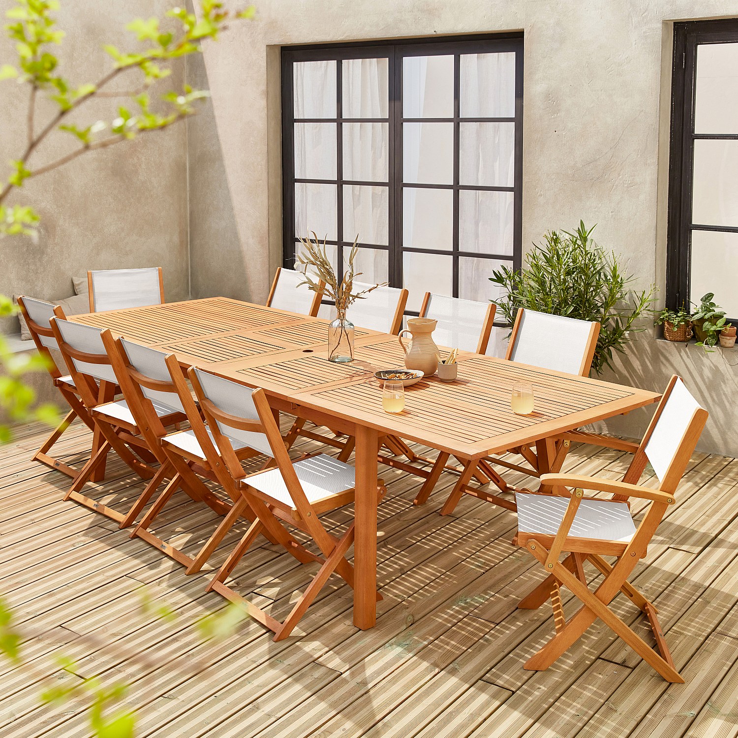 Mesa de jardín extensible de madera + 10 sillas madera