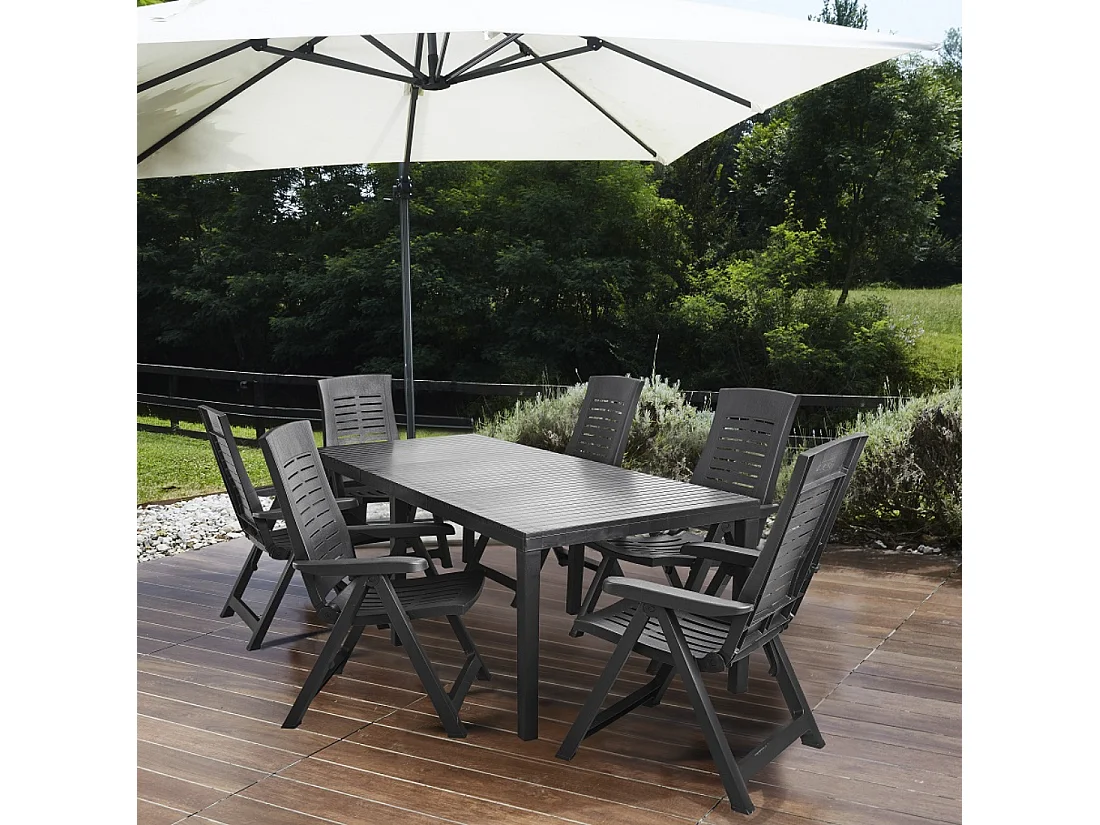 Mesa de Jardín Extensible Indo Antracita IPAE PROGARDEN (220x90x72cm)