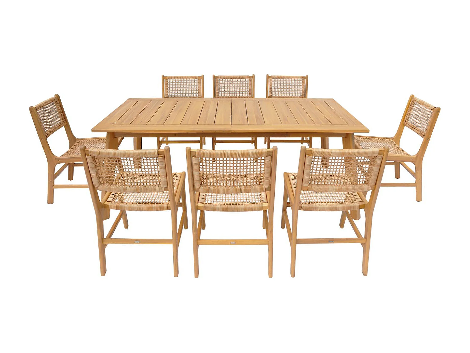 Mesa de jardín extensible madera de acacia con 8 sillas natural