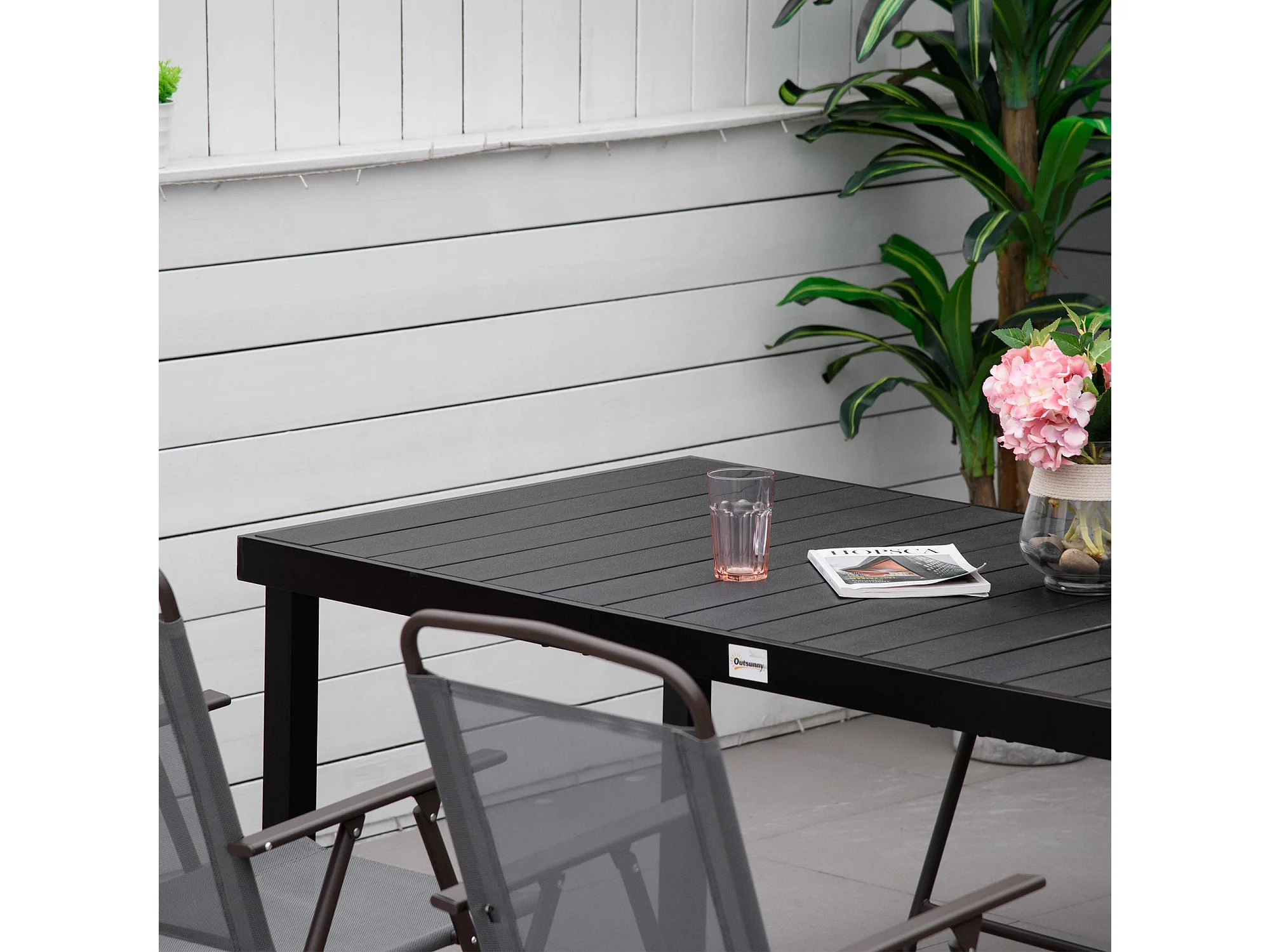Mesa de jardín Kuma Outsunny 8 personas negro 74x190x90 cm