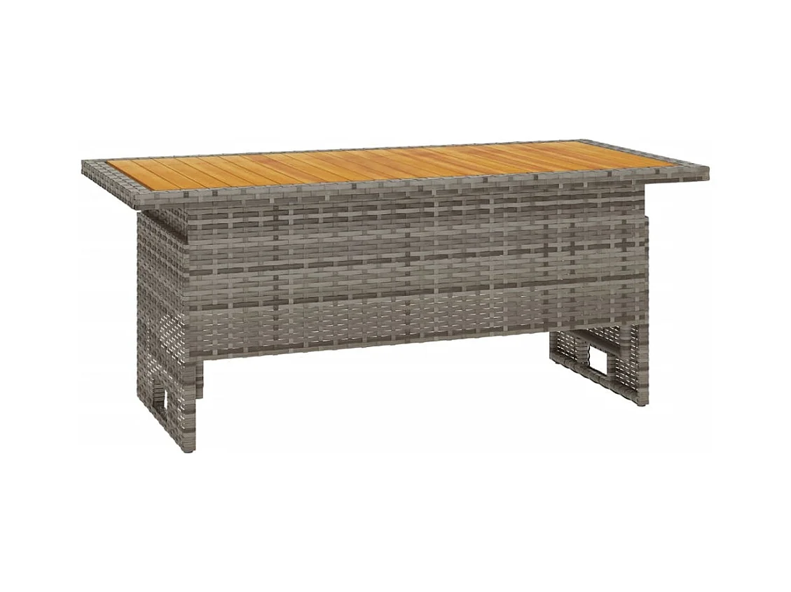 Mesa de jardín madera maciza acacia y ratán gris 100x50x43/63cm