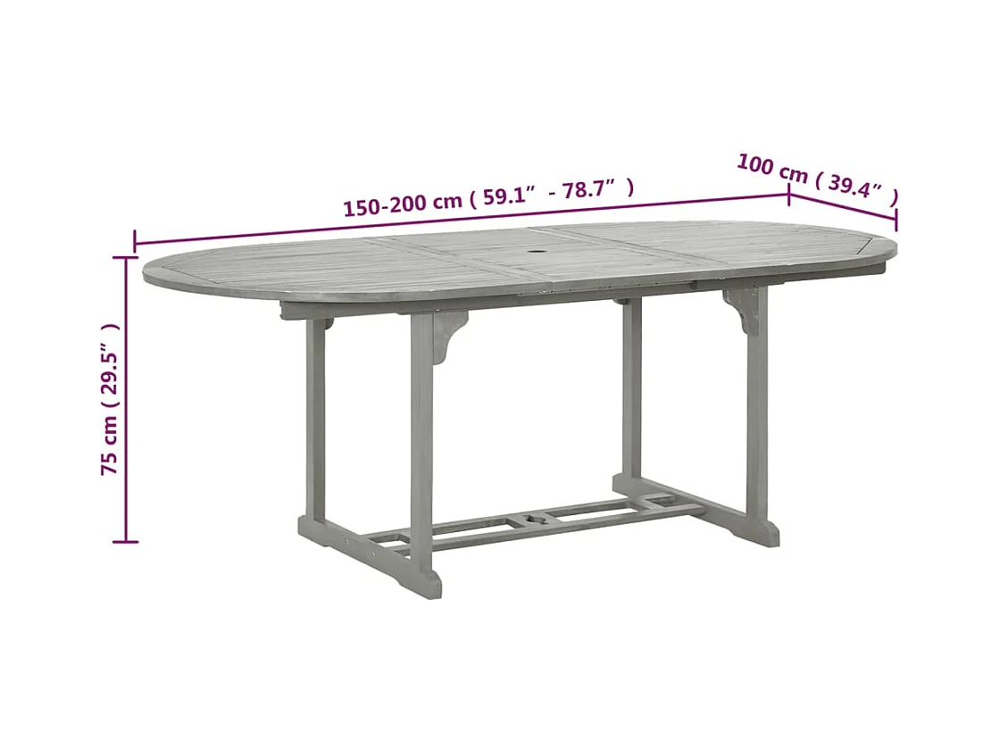 Mesa de jardín madera maciza de acacia gris 200x100x75 cm