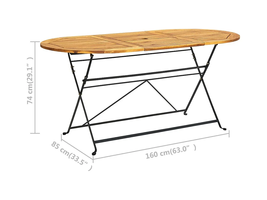 Mesa de jardín madera maciza de acacia ovalada 160x85x74 cm