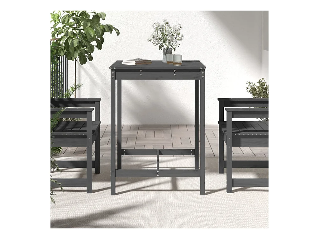 Mesa de jardín madera maciza pino gris 82,5x82,5x110 cm