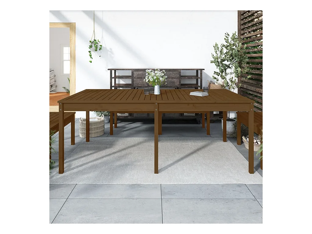 Mesa de jardín madera maciza pino marrón miel 203,5x100x76 cm