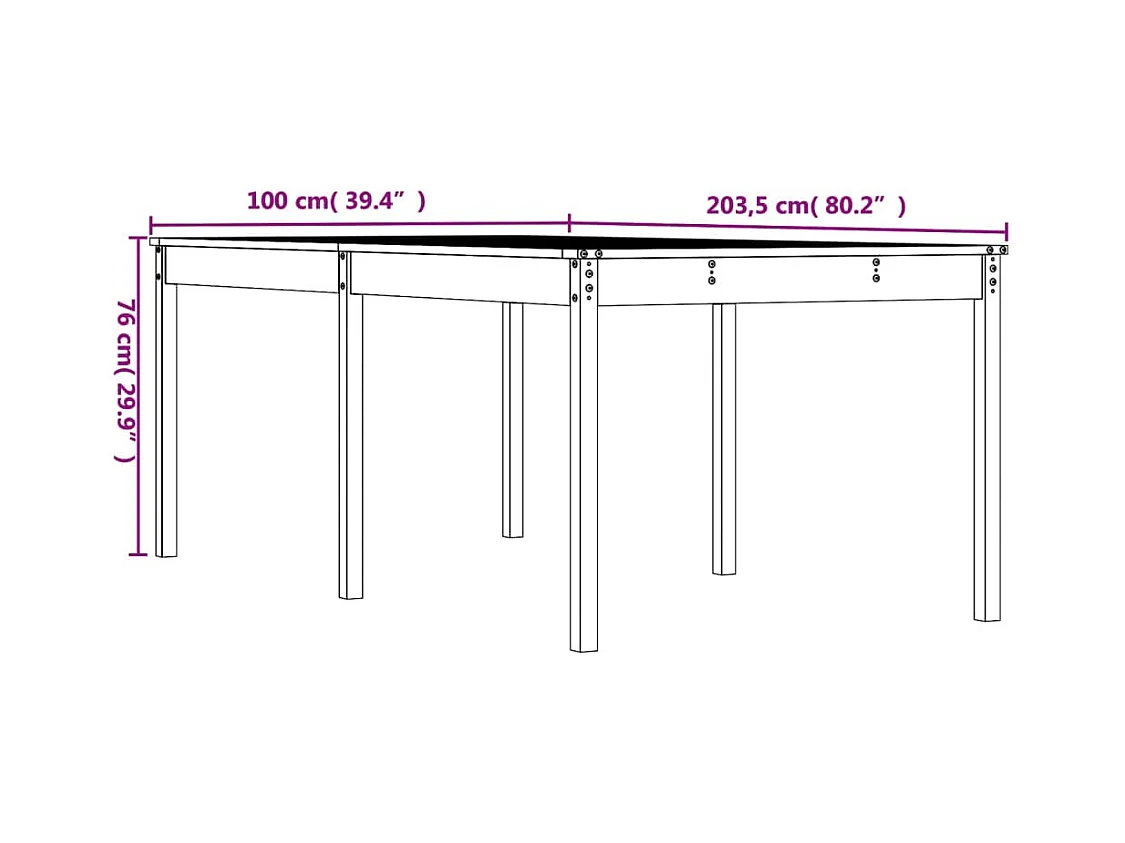 Mesa de jardín madera maciza de pino 203,5x100x76 cm