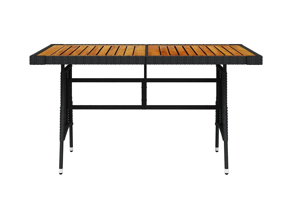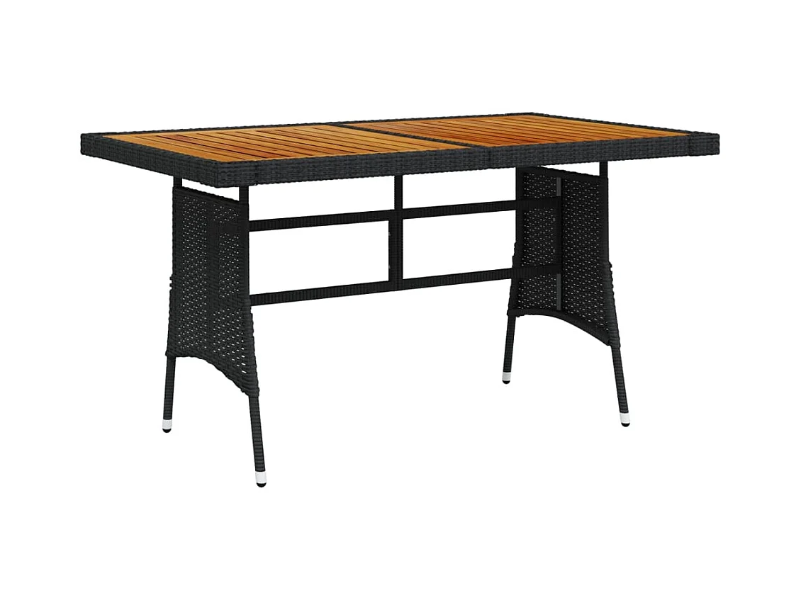 Mesa de jardín negra 130x70x72 cm Mimbre y resina de acacia