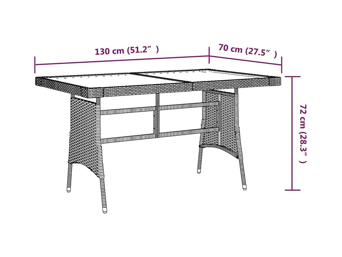 Mesa de jardín negra 110x53x72 cm Cristal y resina trenzada
