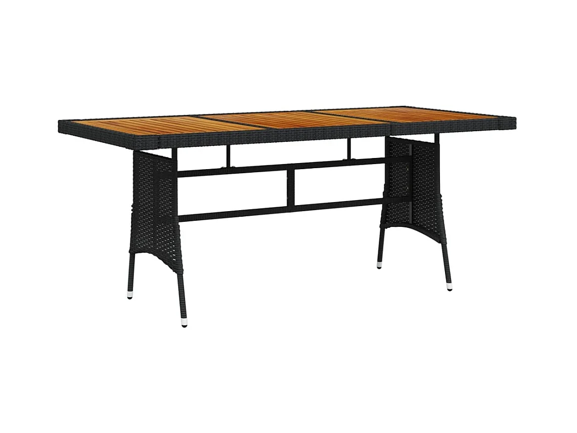 Mesa de jardín negra 160x70x72 cm Mimbre y resina de acacia