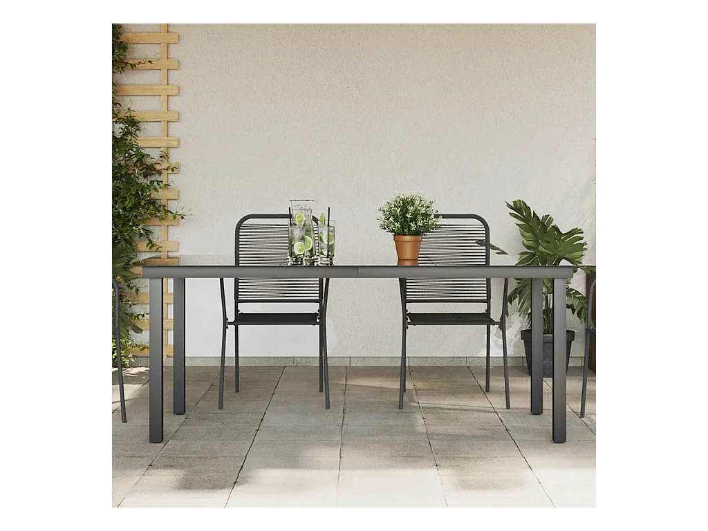 Mesa de jardín negra 190x90x75 cm Cristal templado/resina tejida