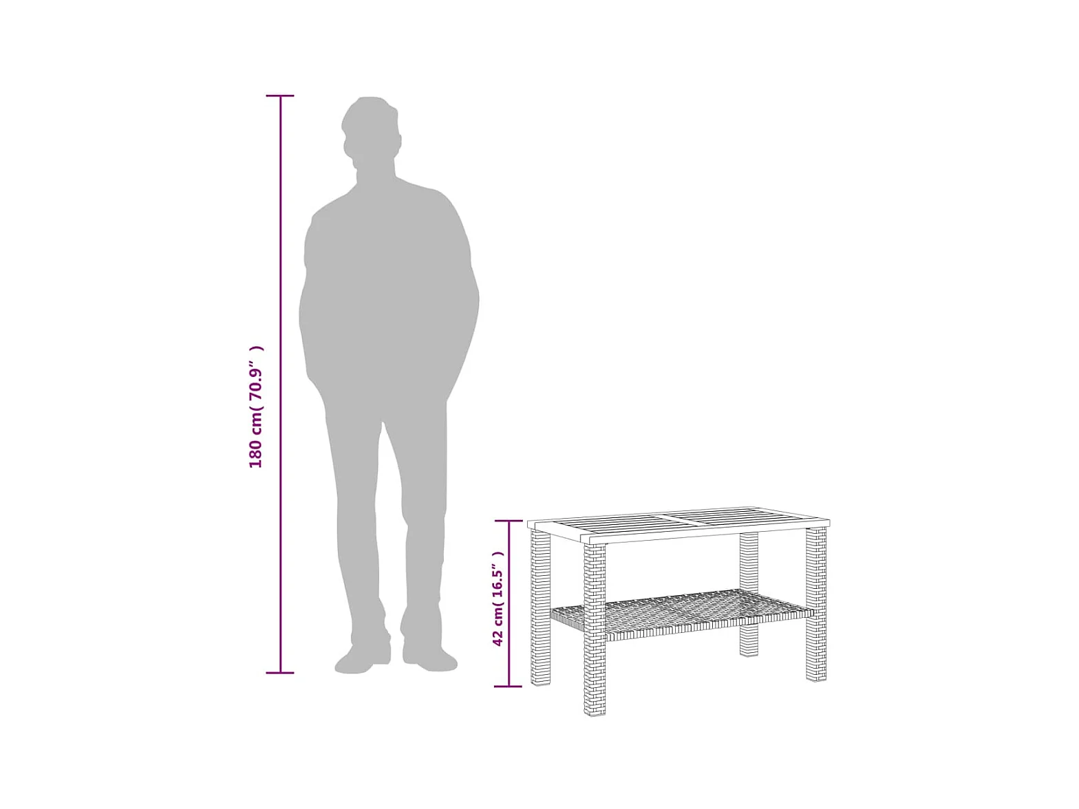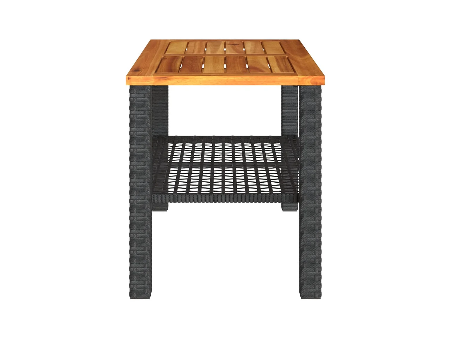 Mesa de jardín negra 70x38x42 cm resina trenzada y madera de acacia
