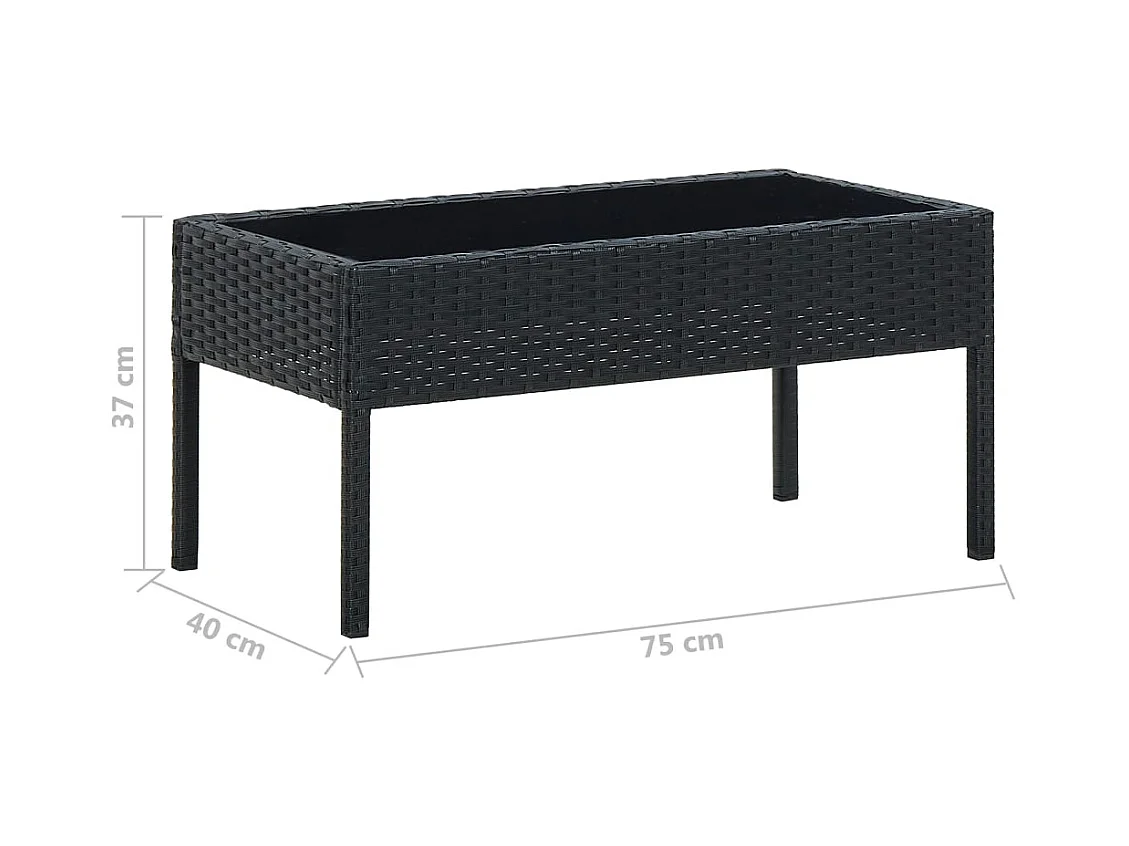 Mesa de jardín negra 75x40x37 cm Resina mimbre