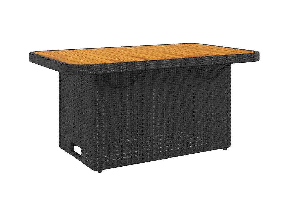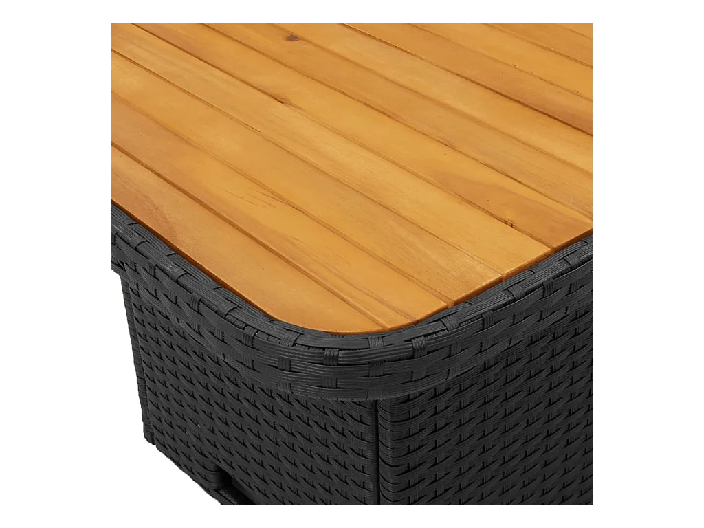 Mesa de jardín negra 100x55x73 cm resina trenzada y madera de acacia