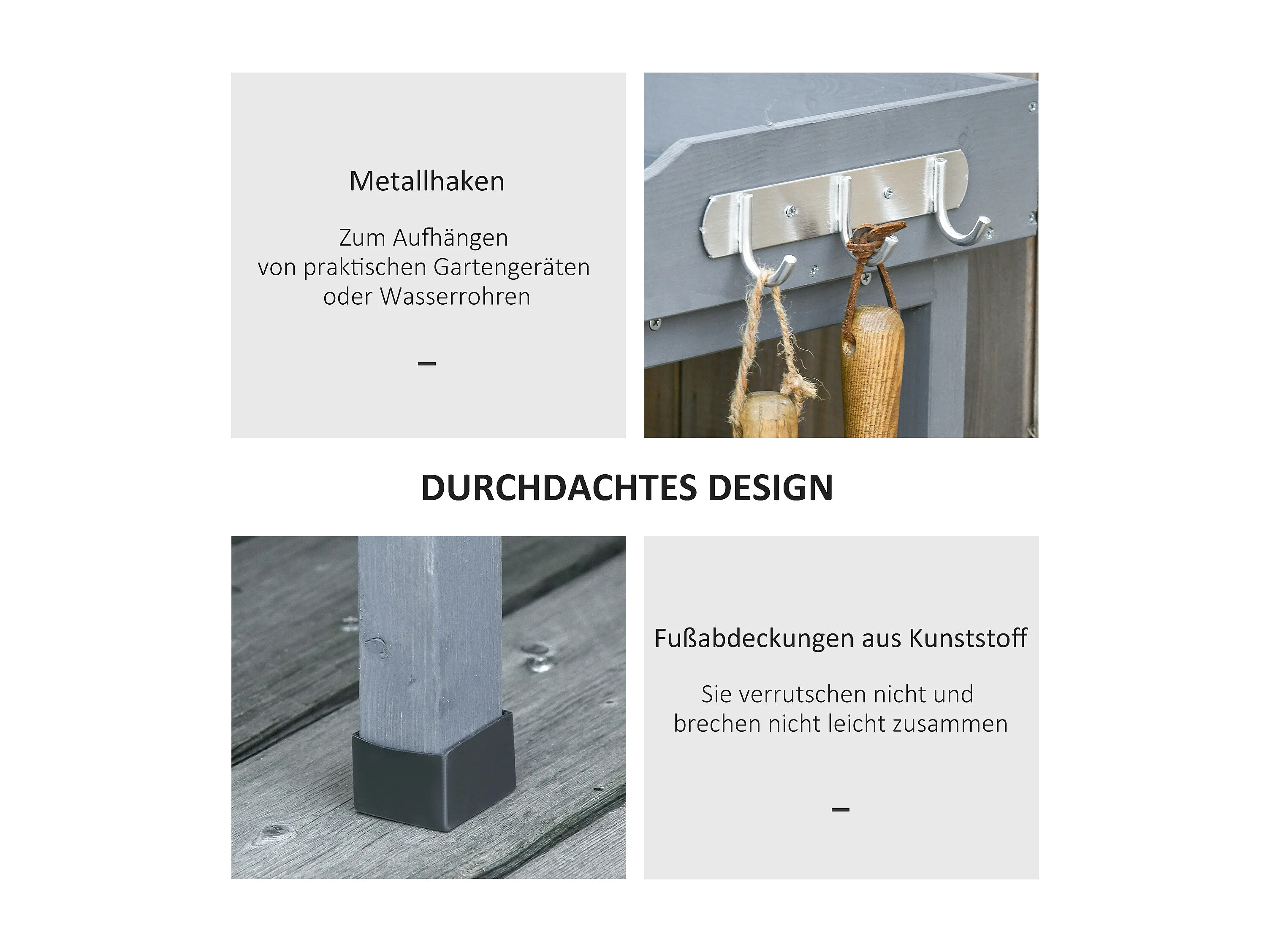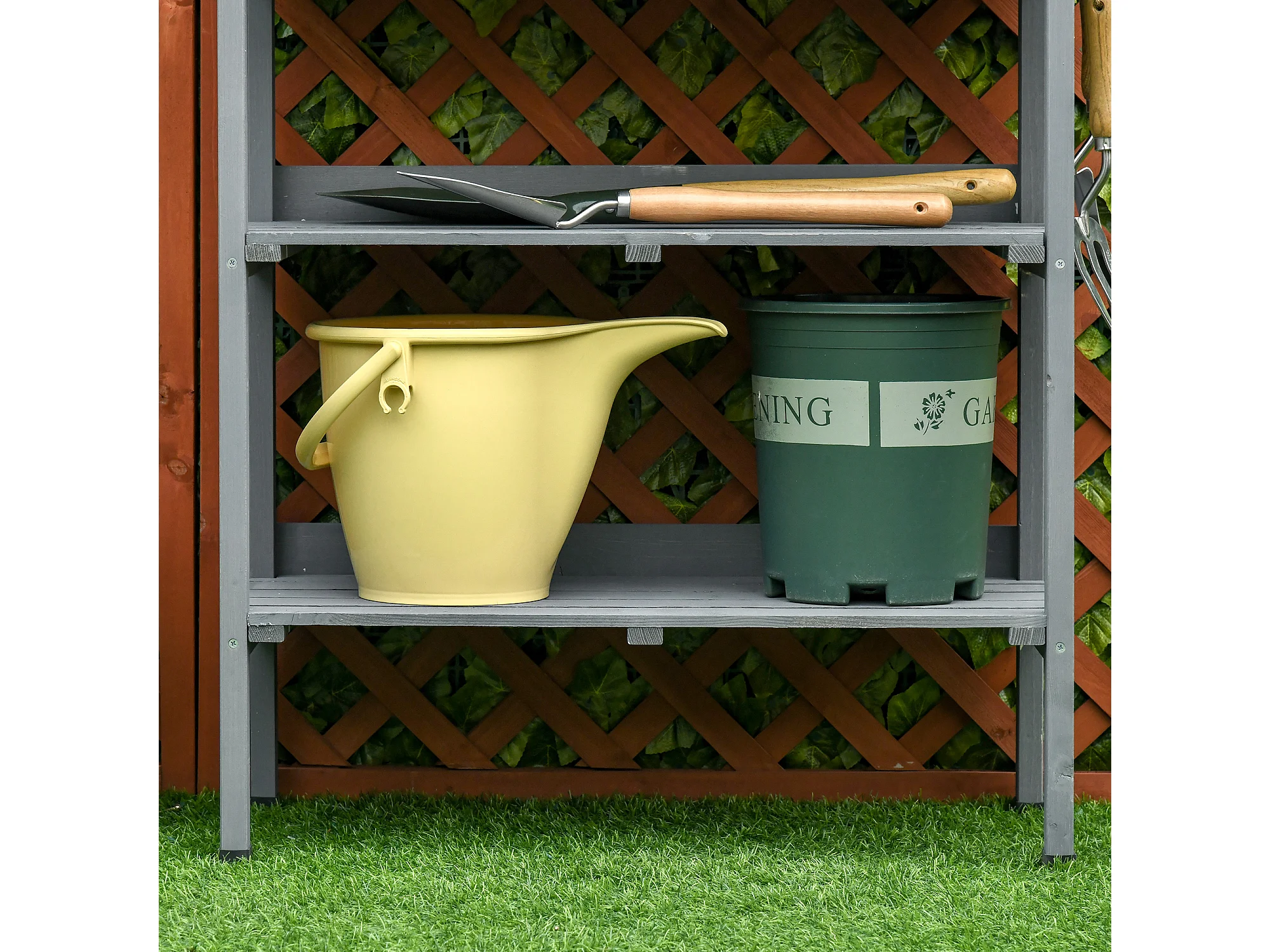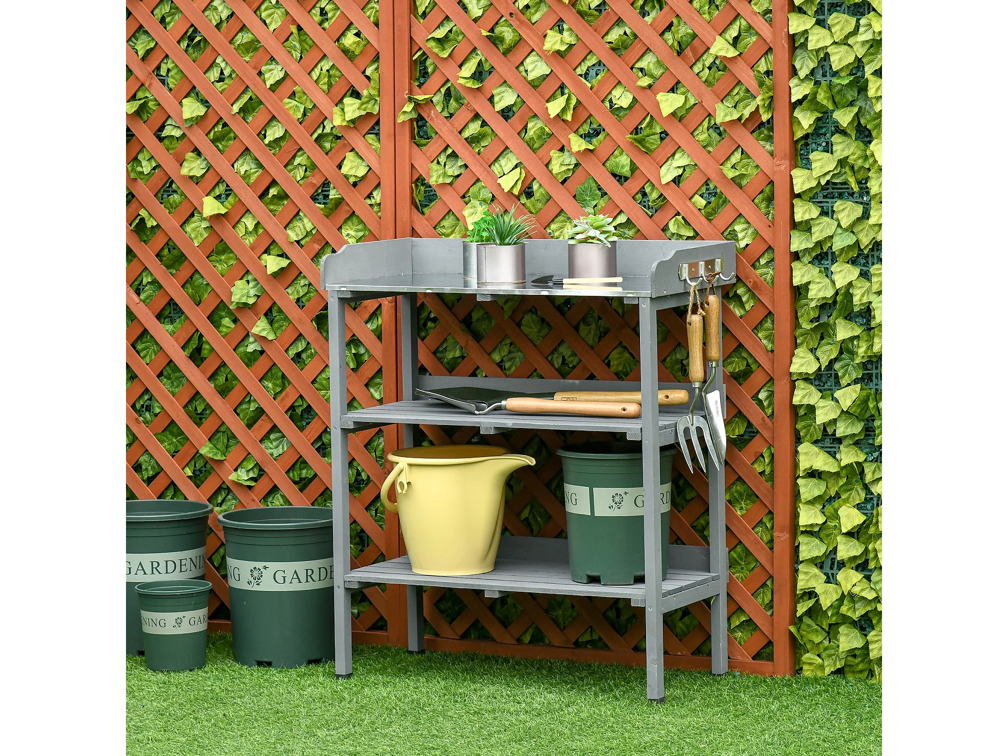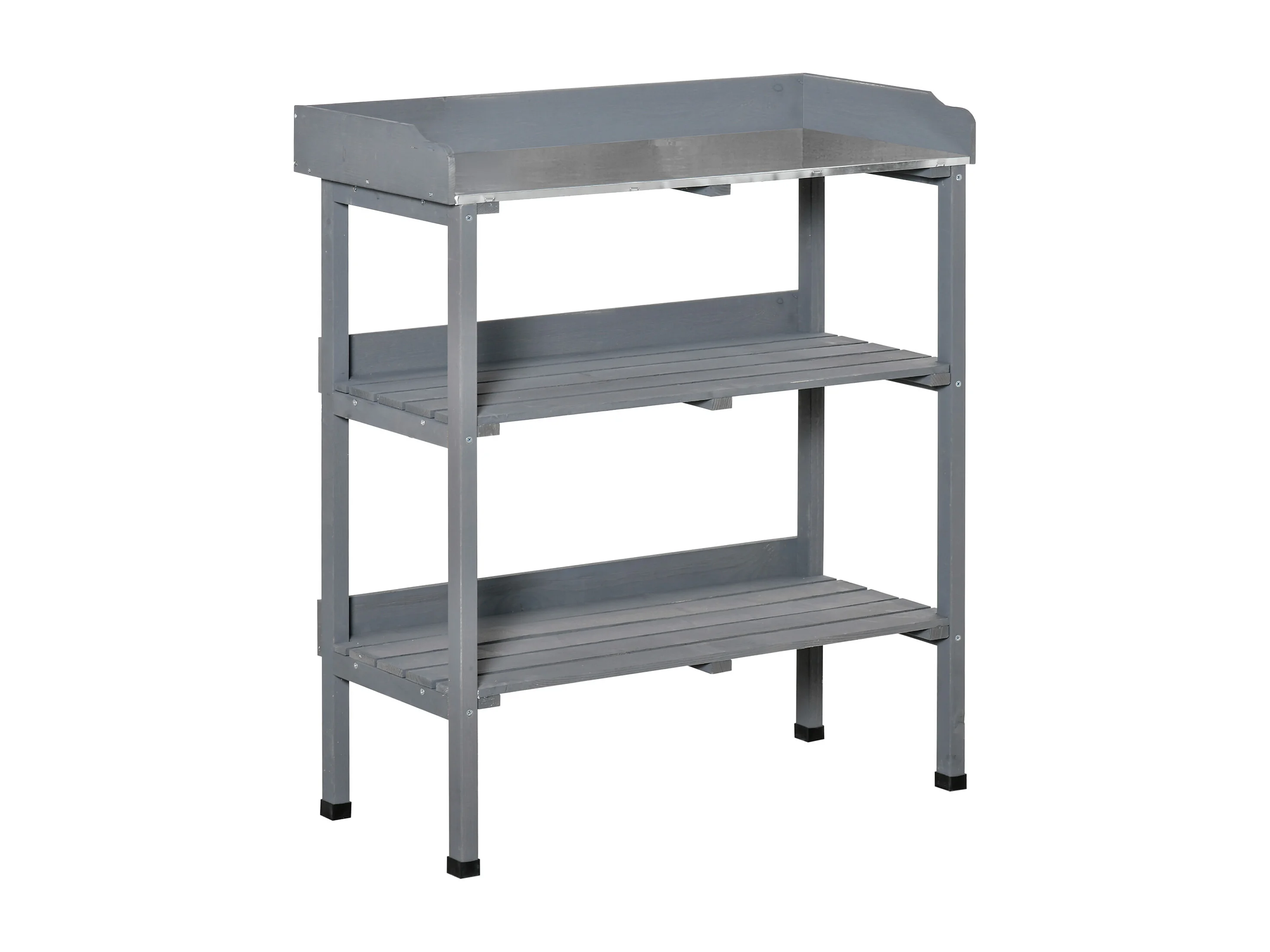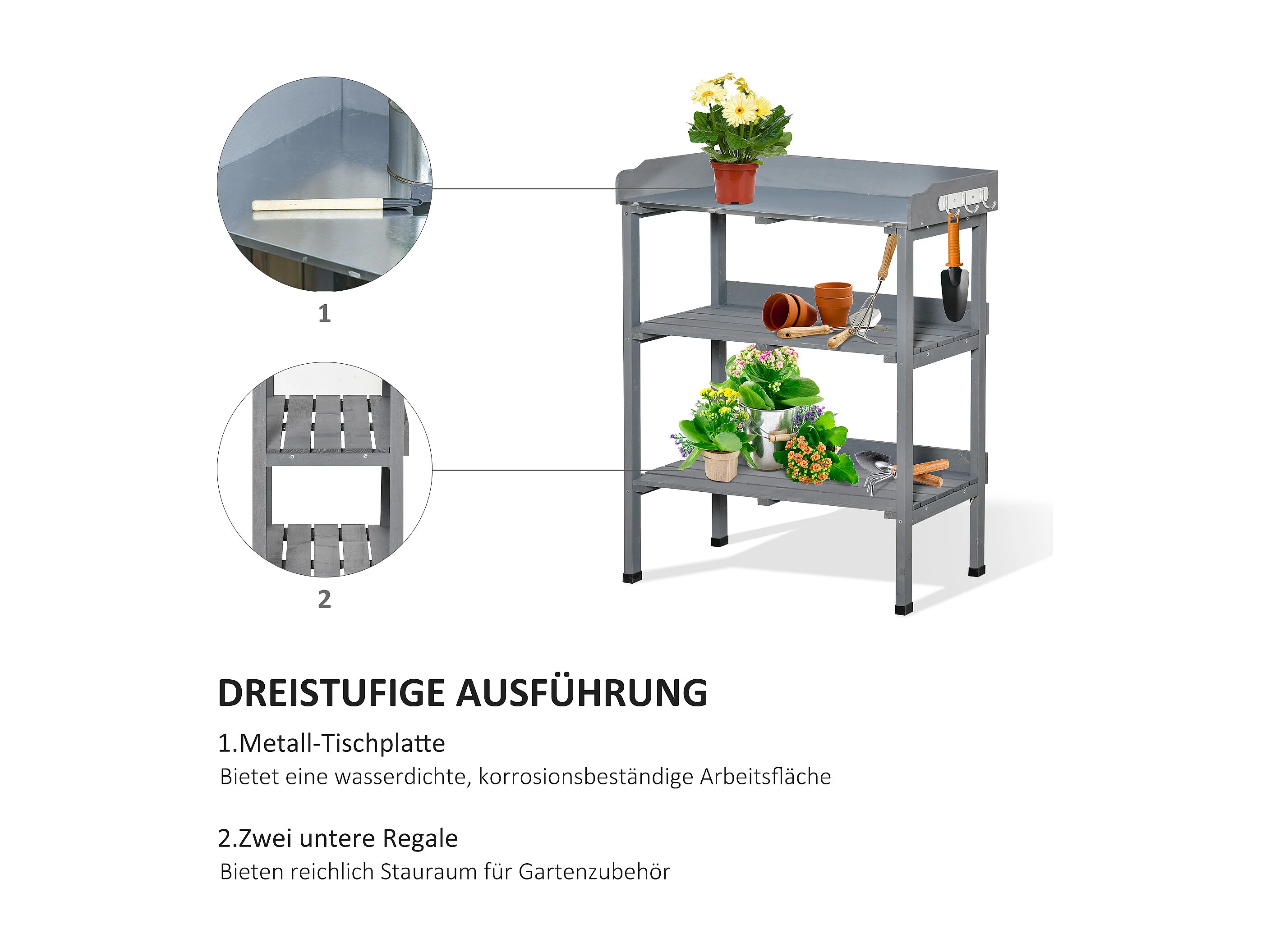 Mesa de jardín para plantas con superficie de metal y estructura de madera, gris (76x37x89 cm)