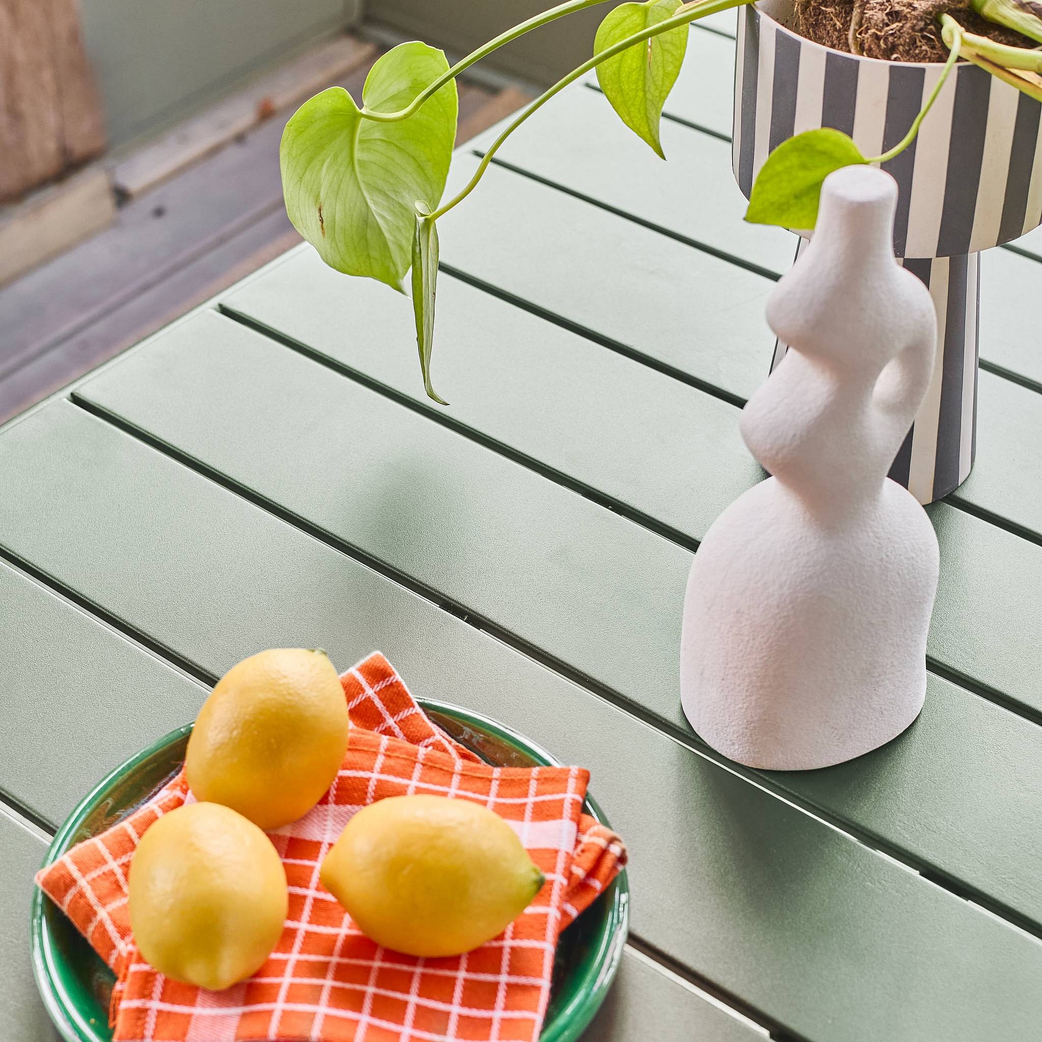 Ventajas del producto Mesa de jardín con tablillas y bordes redondeados Fácil evacuación del agua de lluvia Tratamiento antioxidante Mesa de jardín de acero Una mesa de jardín de diseño atemporal Esta mesa metálica de 4 plazas es perfecta para su jardín o balcón terraza. Su diseño atemporal combinará y se adaptará a cualquier estilo de exterior. La mesa Amelia es perfecta para reunirse con amigos y familiares. Disfrute del aire libre con esta magnífica mesa. Robusta y resistente al óxido La mesa de jardín de acero Amelia es perfecta para quienes desean una mesa duradera y de buen aspecto. Tiene un tratamiento antioxidante, lo que significa que puede utilizarse en el exterior sin preocuparse de que la humedad o la lluvia la dañen. La mesa también tiene atractivos listones y bordes redondeados. Por último, el agua de lluvia puede salir fácilmente por las ranuras de la mesa. Más información: Ofrecemos esta mesa de jardín Amelia en varios tamaños, formas y colores. Esta mesa de jardín también es compatible con las sillas Amelia. Características : Material : Acero Forma : Rectángulo Número de plazas : 6 Para montar (instrucciones suministradas) Para uso doméstico 2 años de garantía Dimensiones : Mesa: 141.2 x 80 x 72.5cm