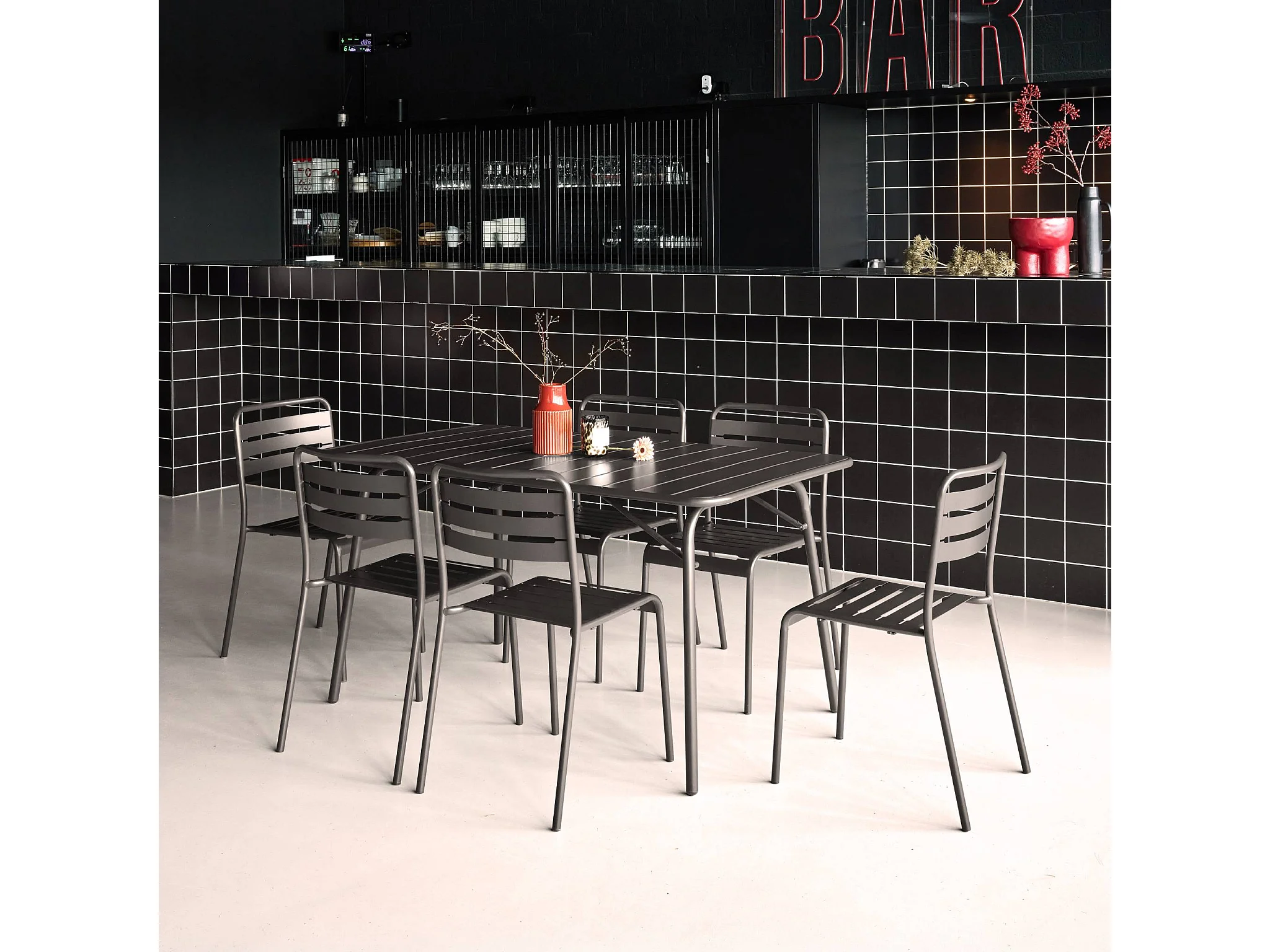 Set mesa de jardín plegable de metal con 6 sillas antracita