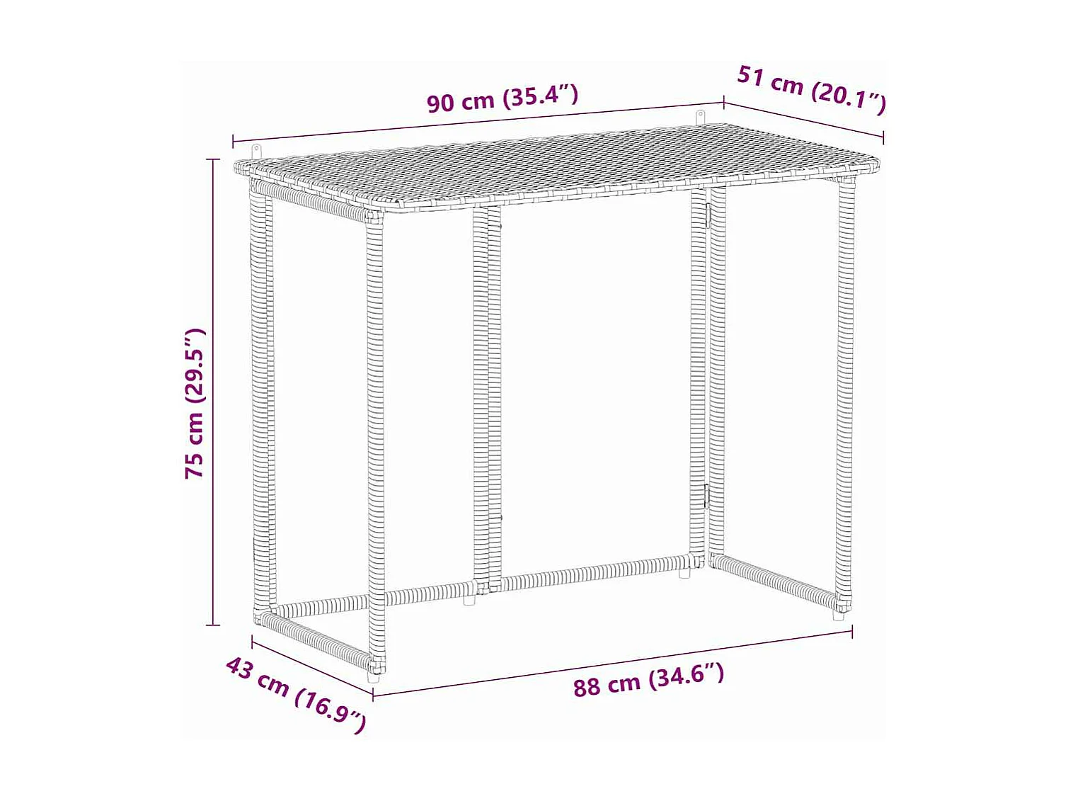 Mesa de jardín plegable de ratán sintético negra 90x51x75 cm