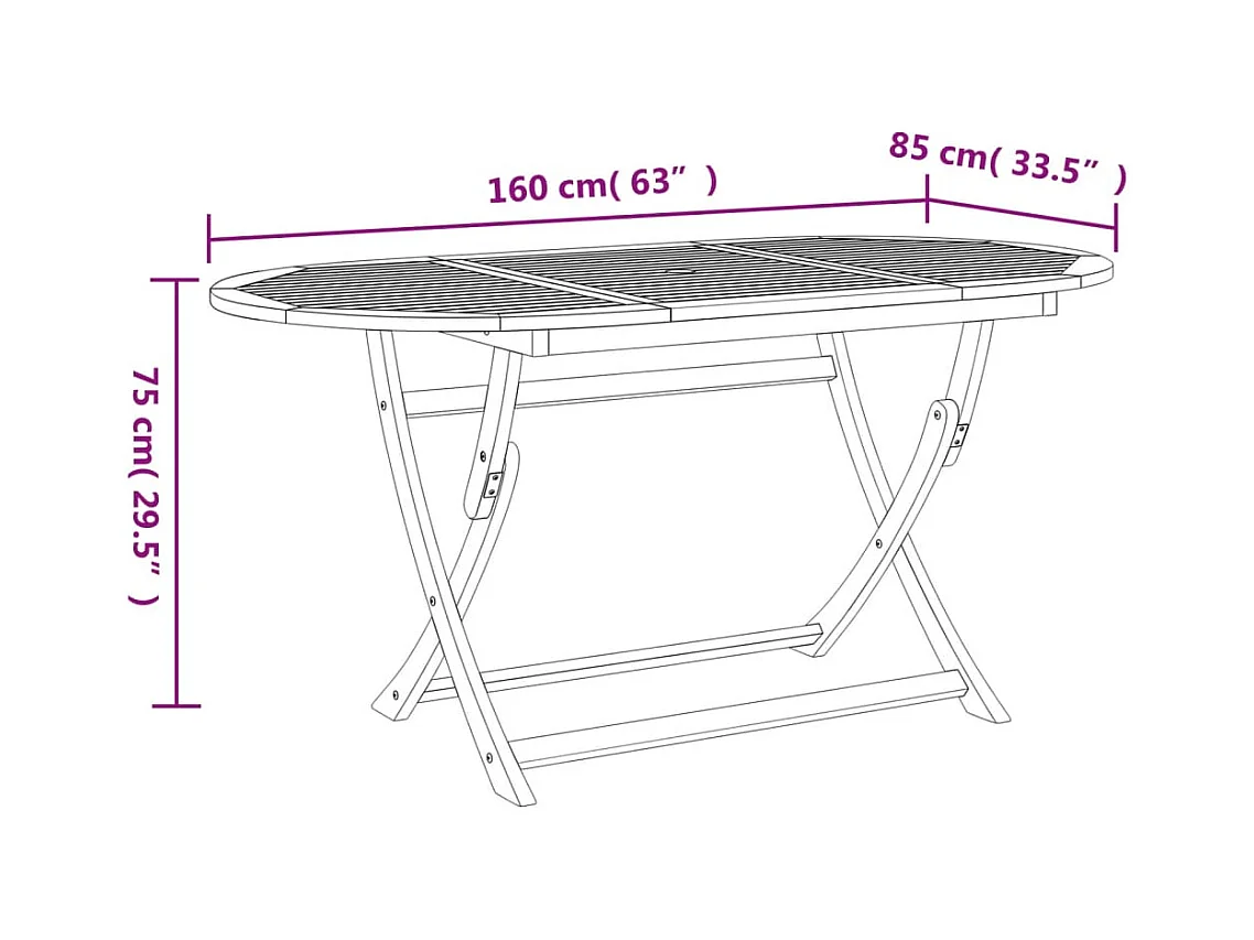 Mesa de jardín plegable madera maciza de acacia 160x85x75 cm