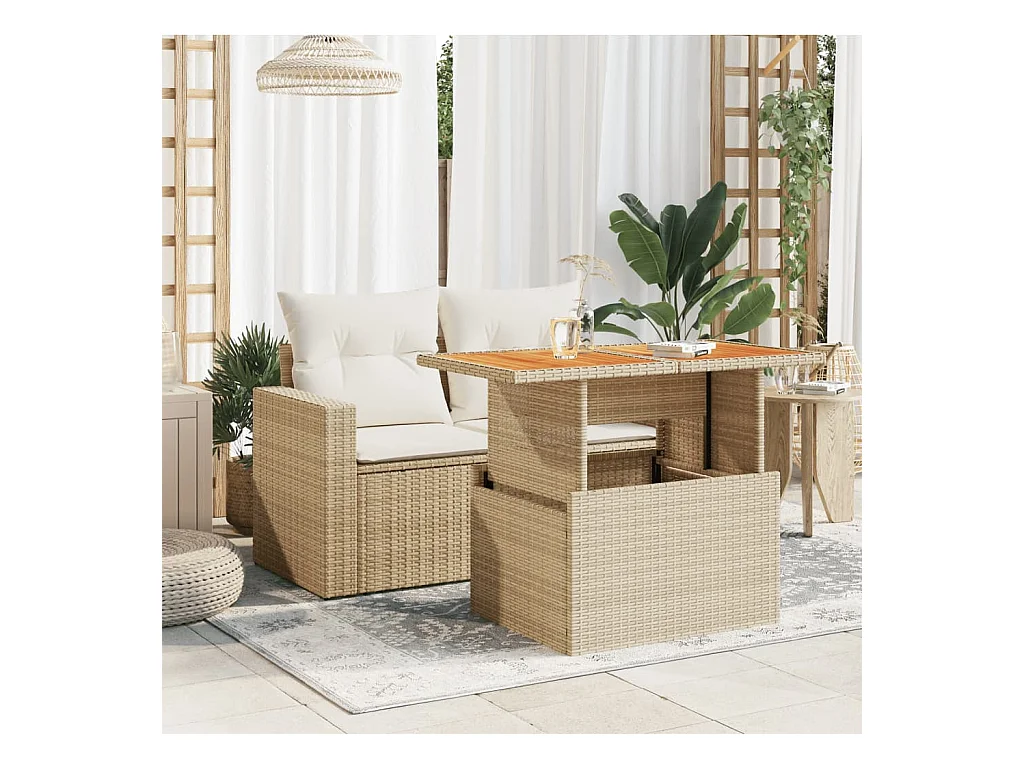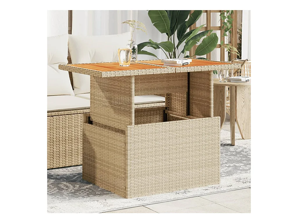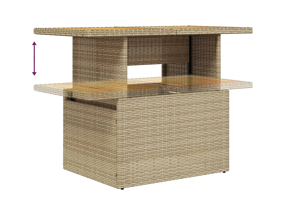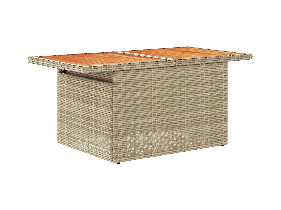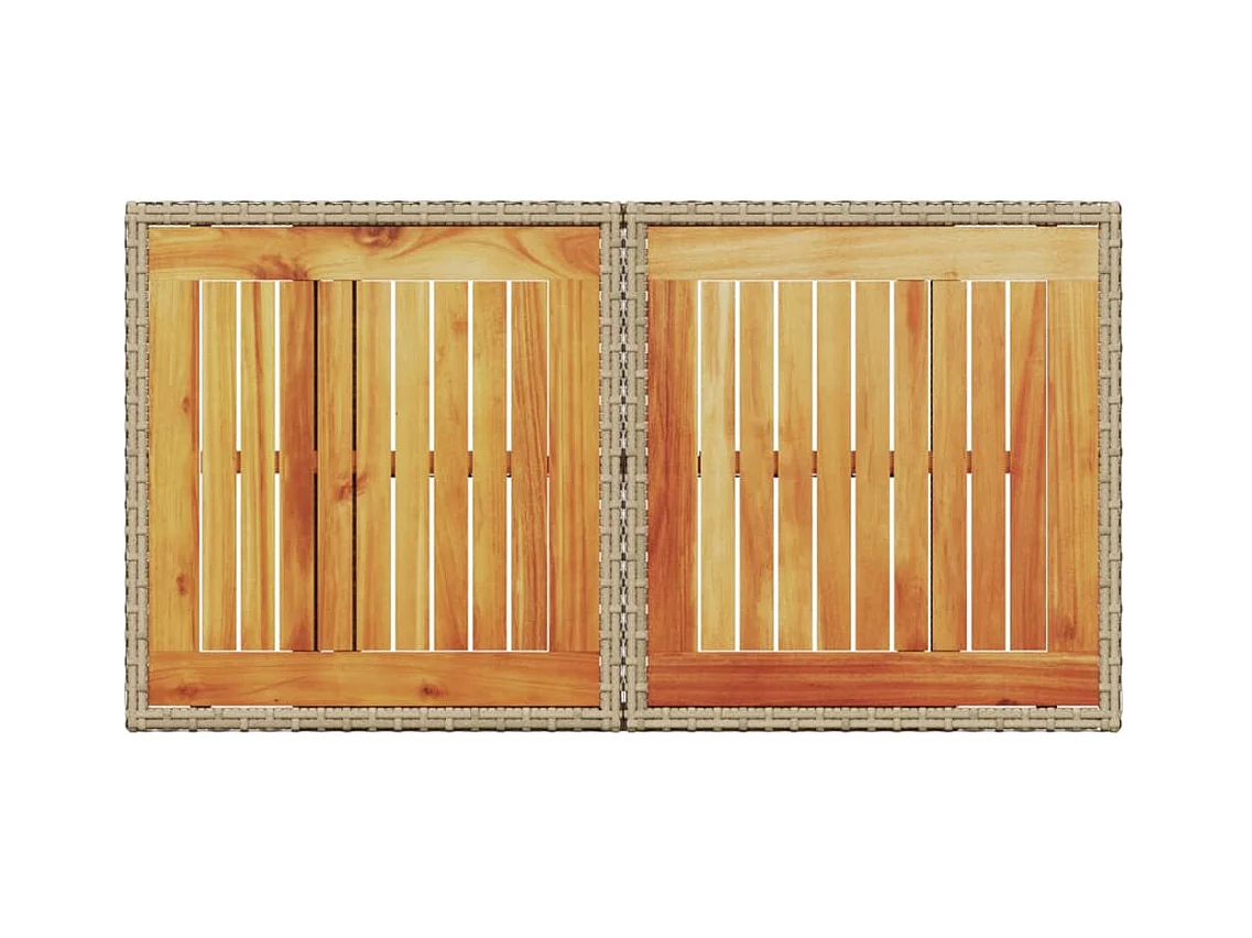 Mesa de jardín ratán PE y madera de acacia beige 100x55x73 cm