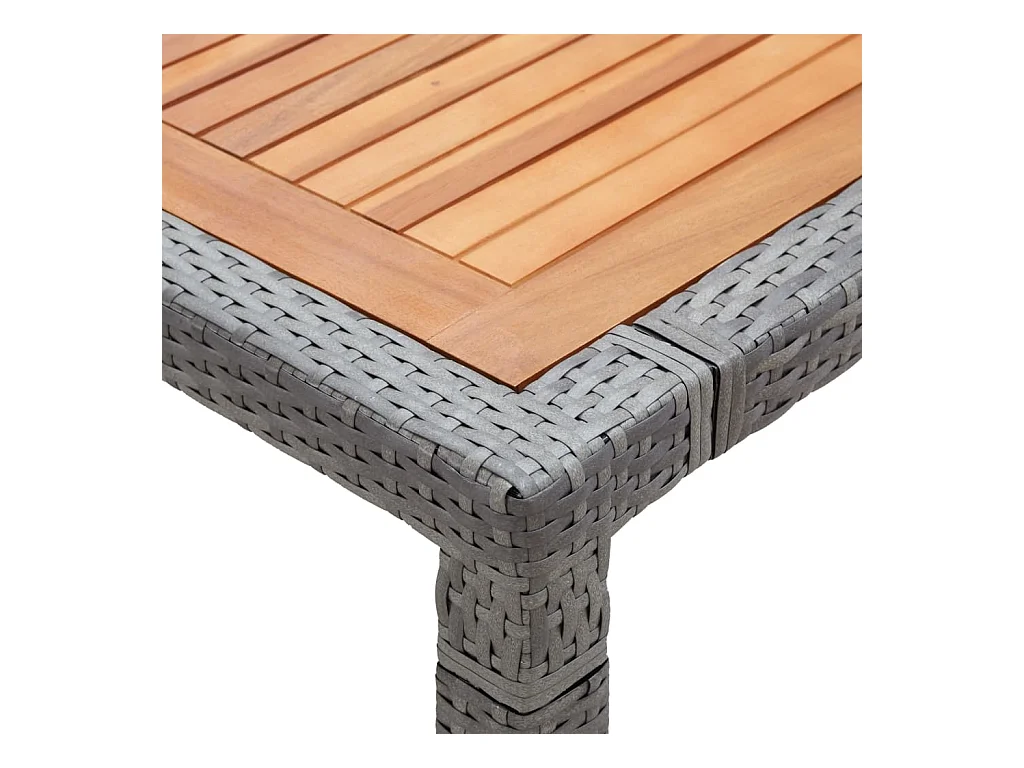 Mesa de jardín ratán sintético madera maciza acacia gris claro