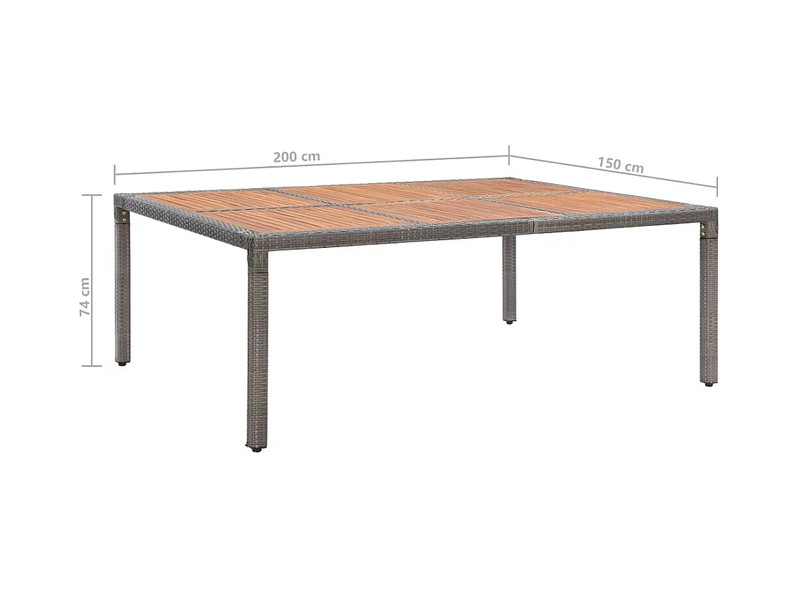 Mesa de jardín ratán PE y madera de acacia gris 200x150x74 cm