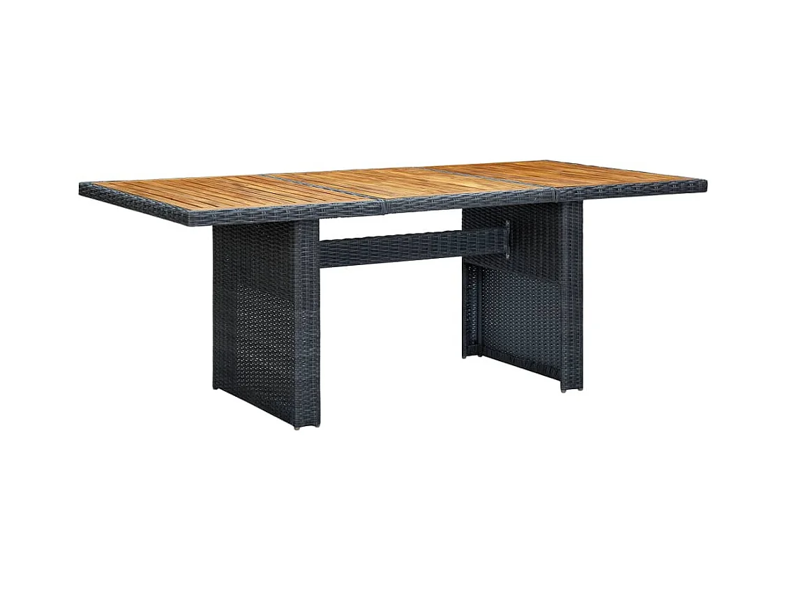 Mesa de jardín ratán PE y madera de acacia gris 200x150x74 cm