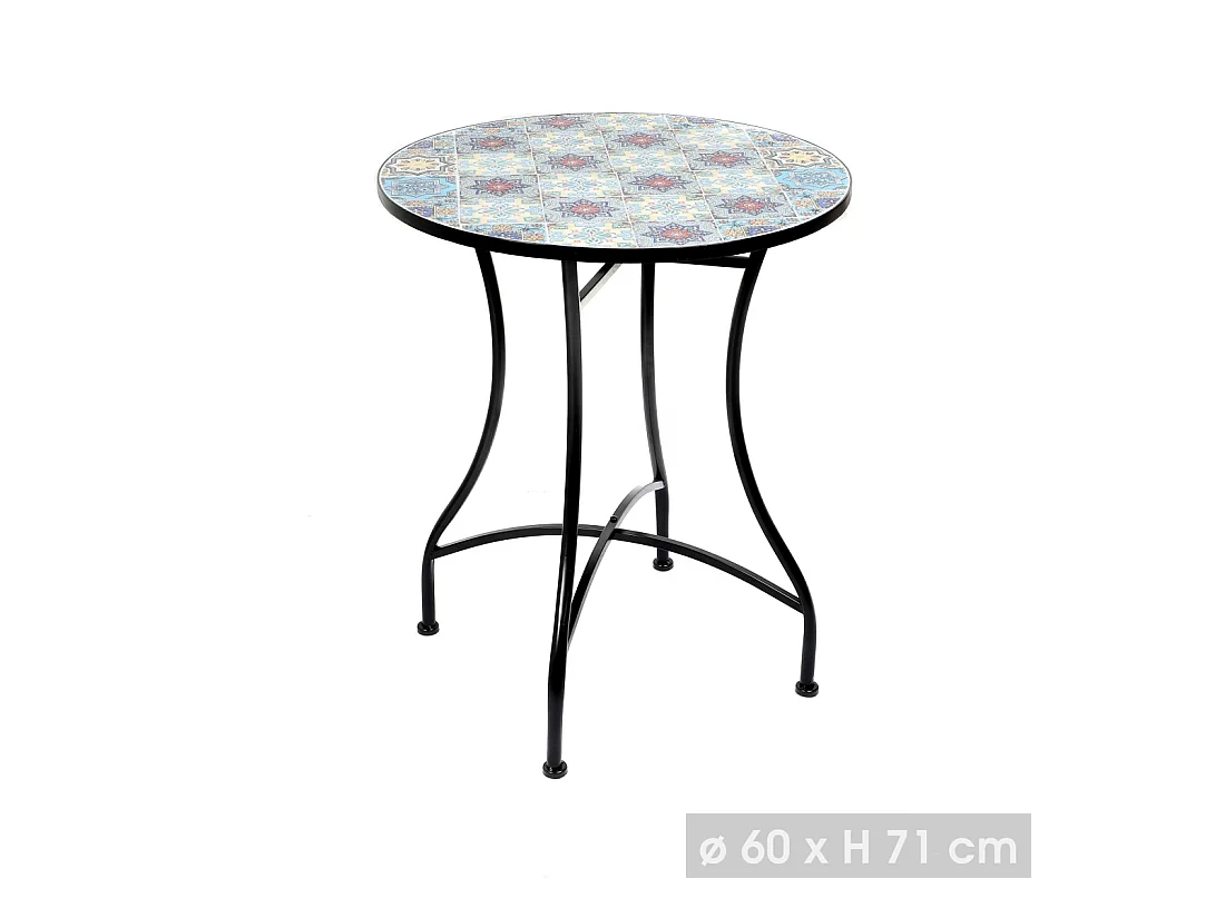 Mesa de jardín redonda bistró colección PORTO – Mosaico decorativo – Metal negro – Ø60xH71 cm