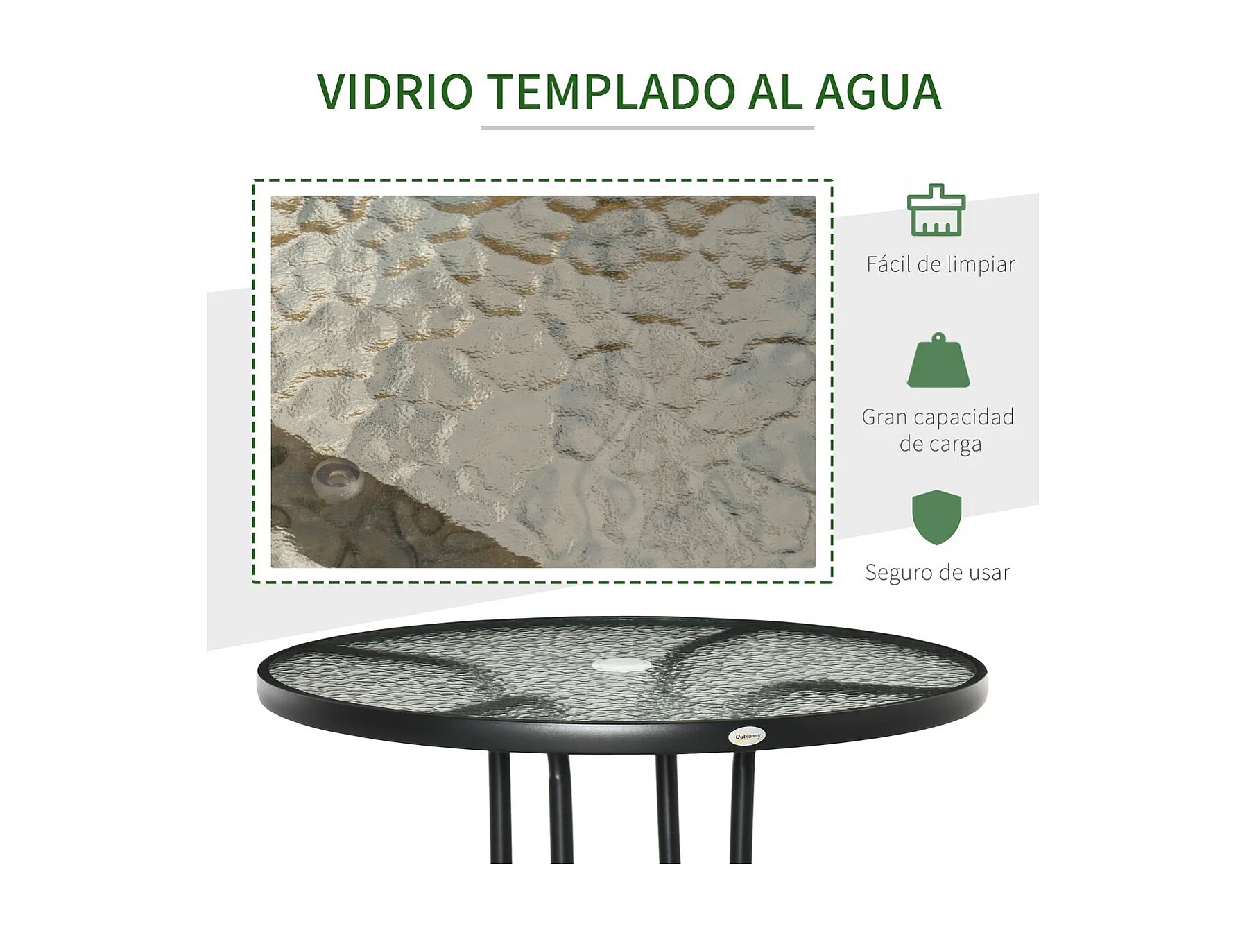 Mesa de jardín Stoke Outsunny redonda con agujero para sombrilla negro Ø80x72 cm