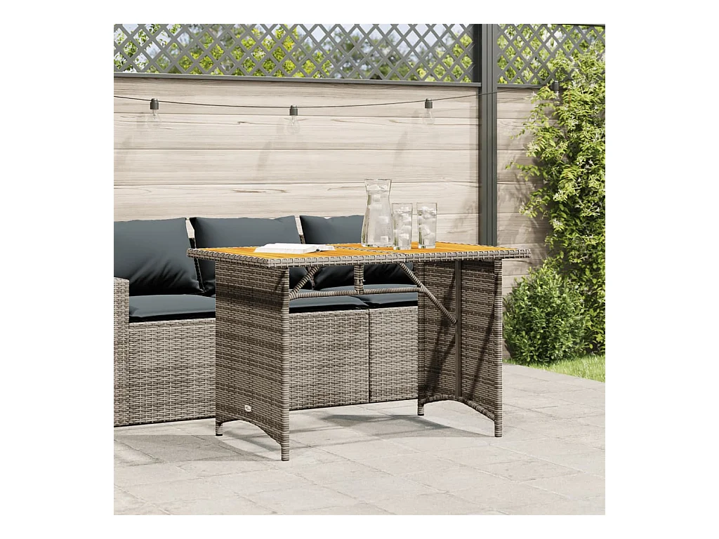 Mesa de jardín ratán sintético y madera acacia gris antracita