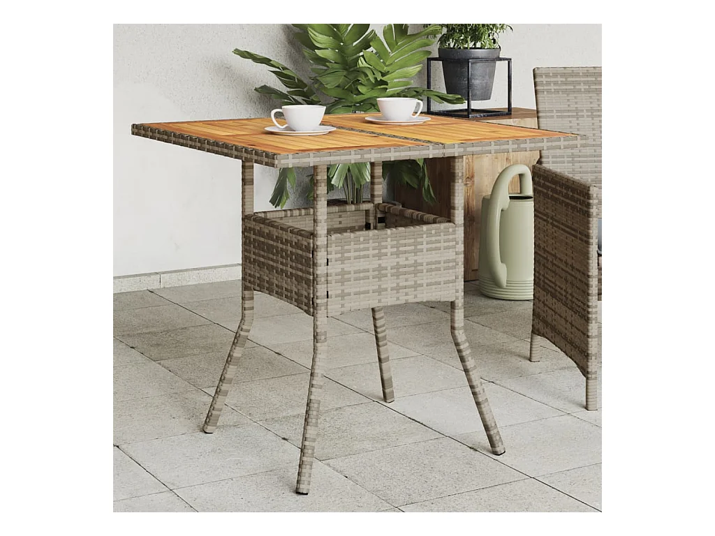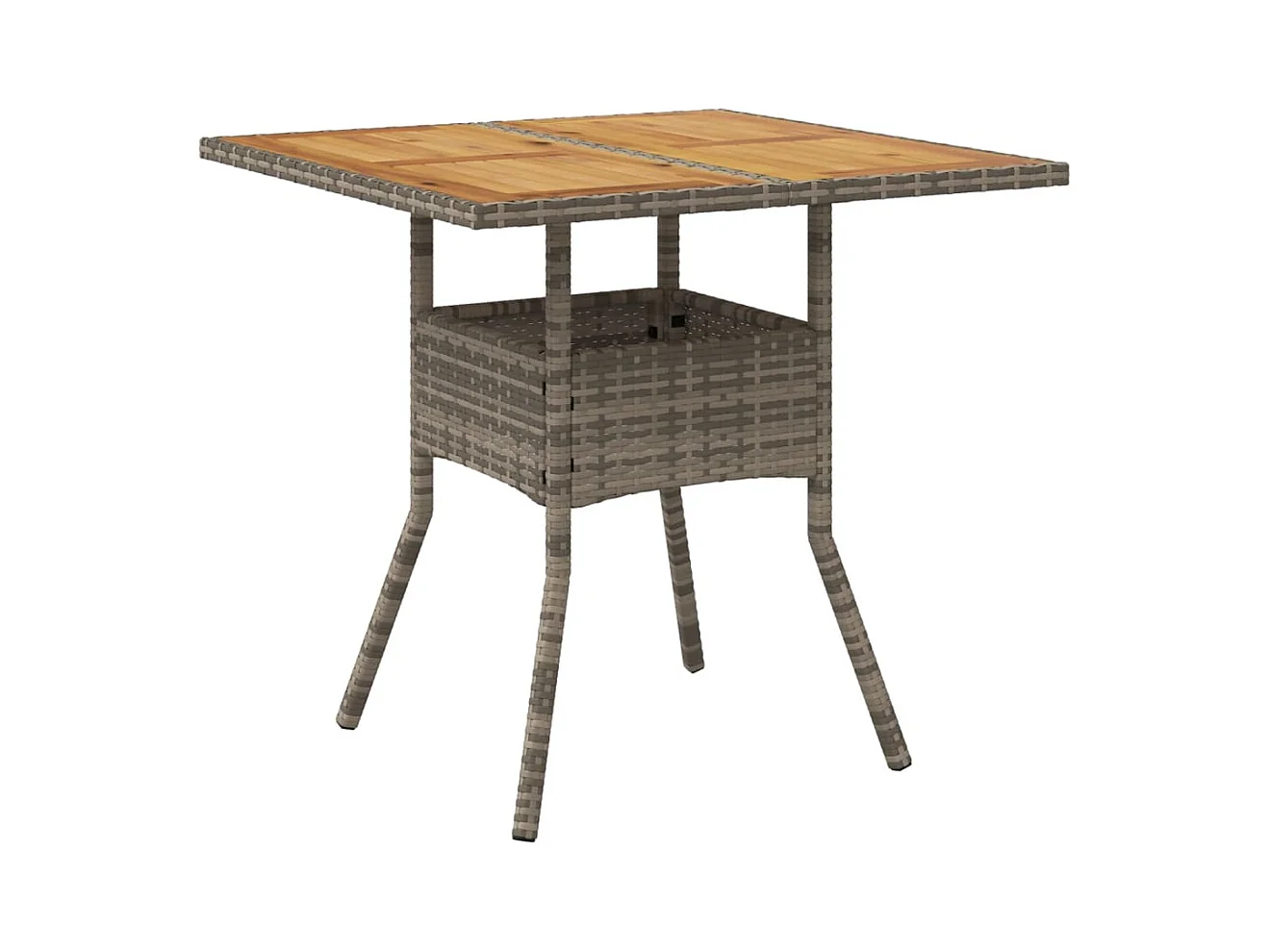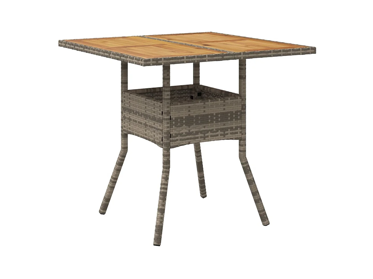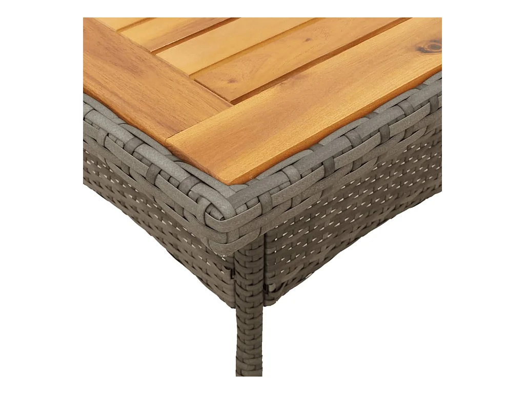 Mesa de jardín ratán PE gris y superficie madera maciza acacia