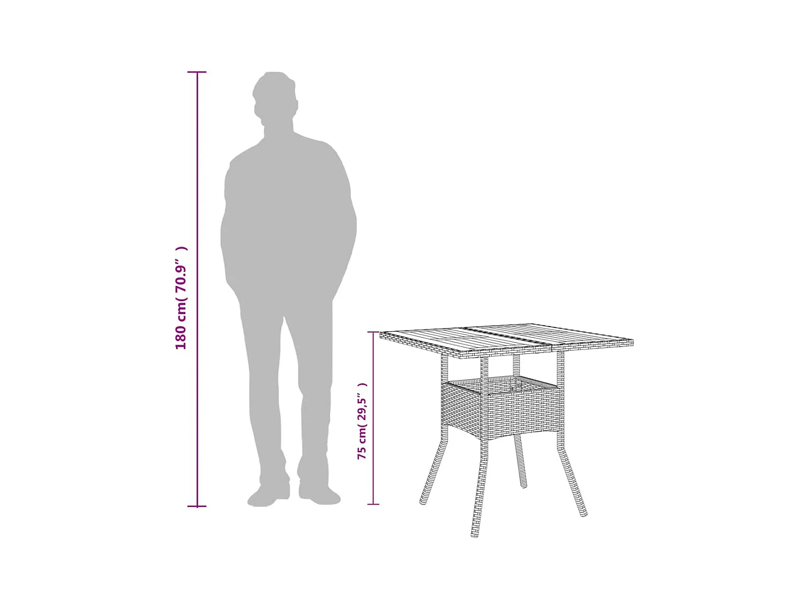 Mesa de jardín ratán sintético y madera acacia gris 80x80x71 cm