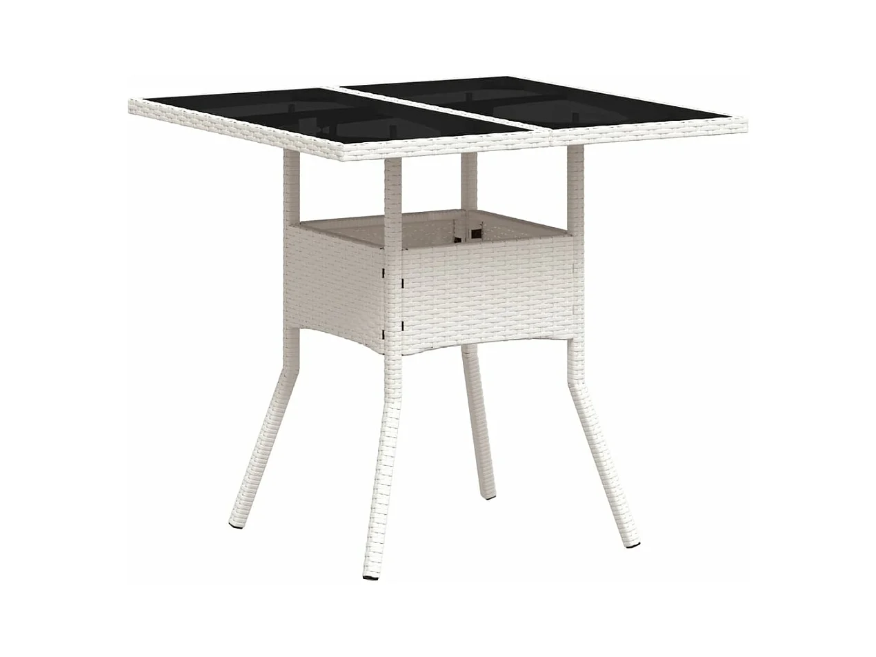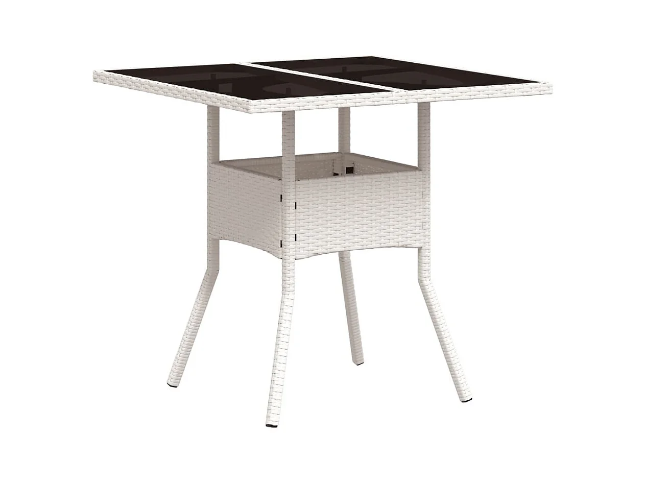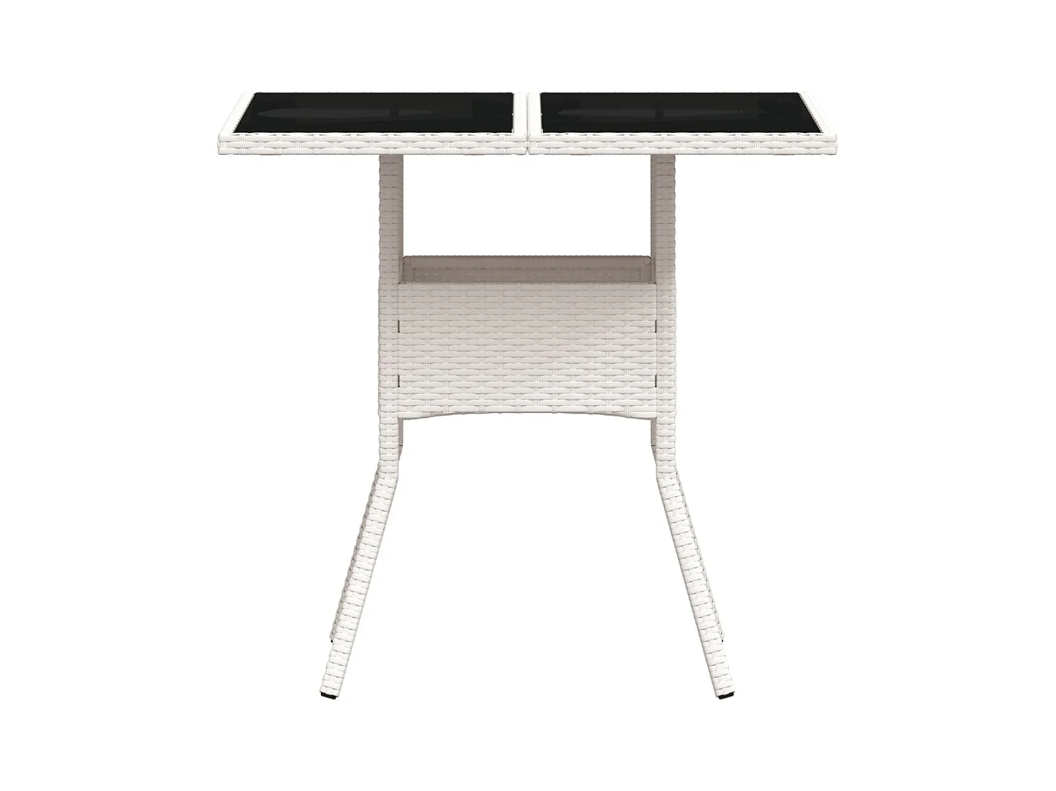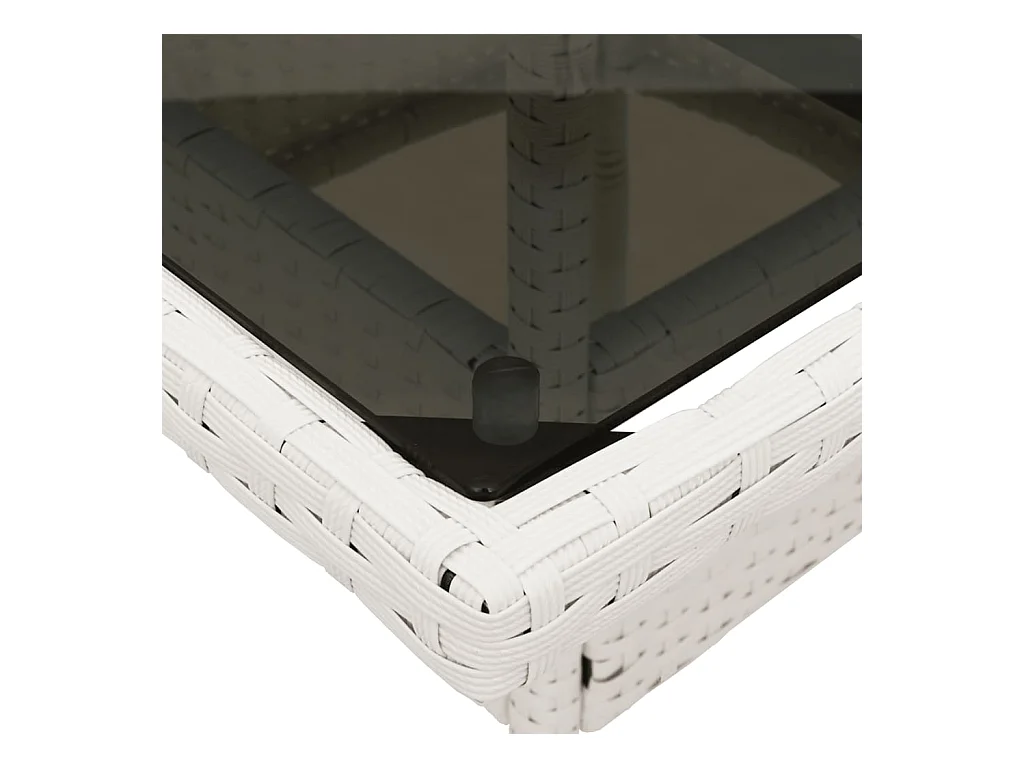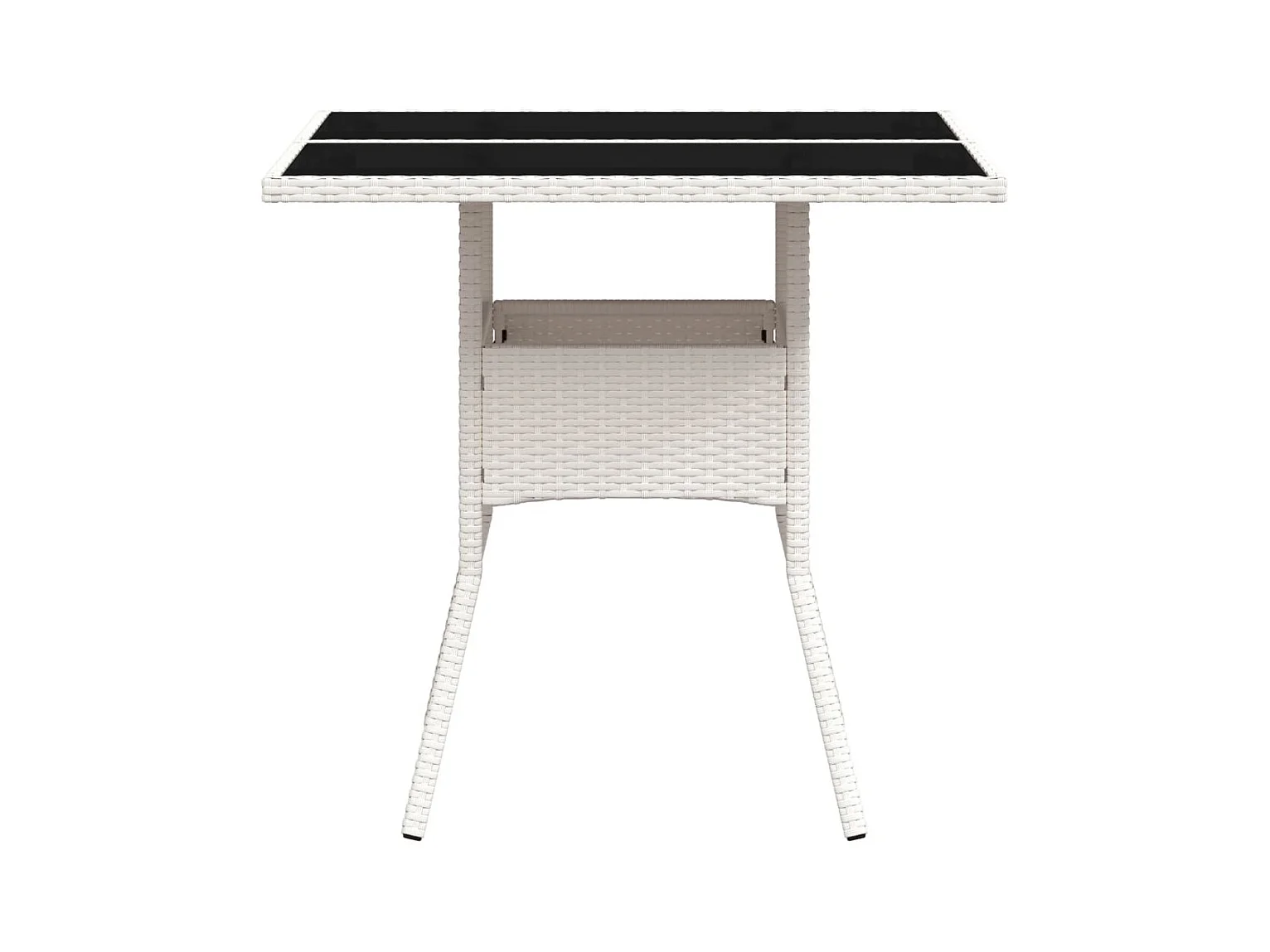 Mesa de jardín superficie de vidrio ratán PE blanco 80x80x75 cm