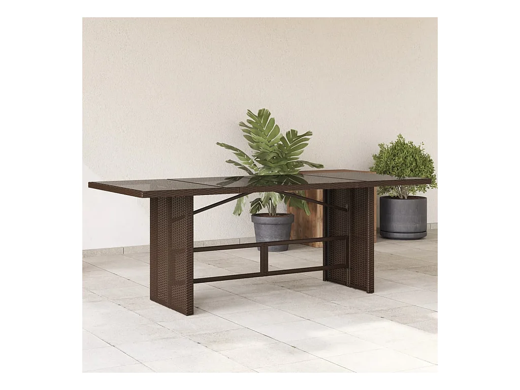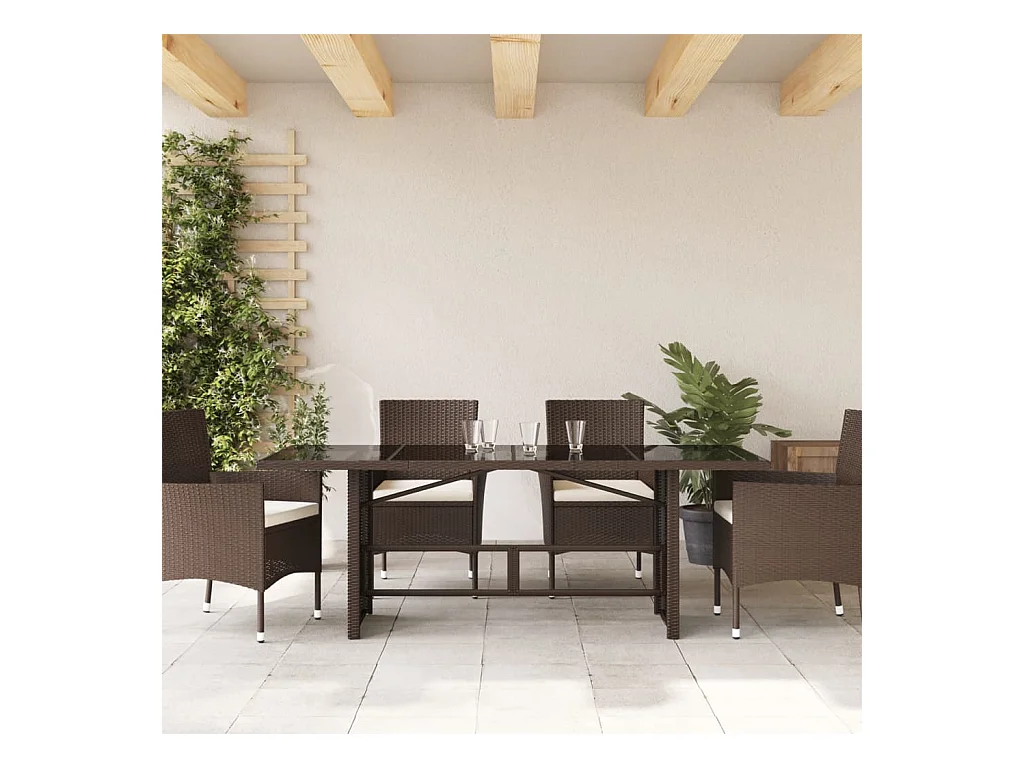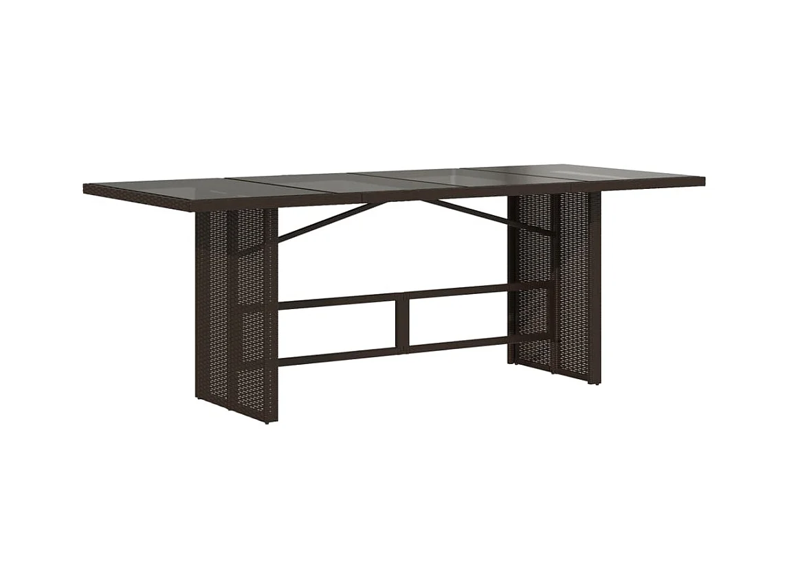 Mesa de comedor jardín vidrio y ratán PE marrón 200x100x74 cm KOW60049