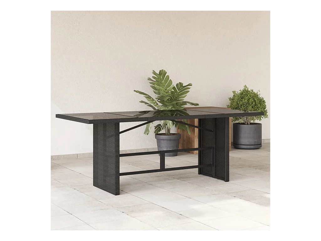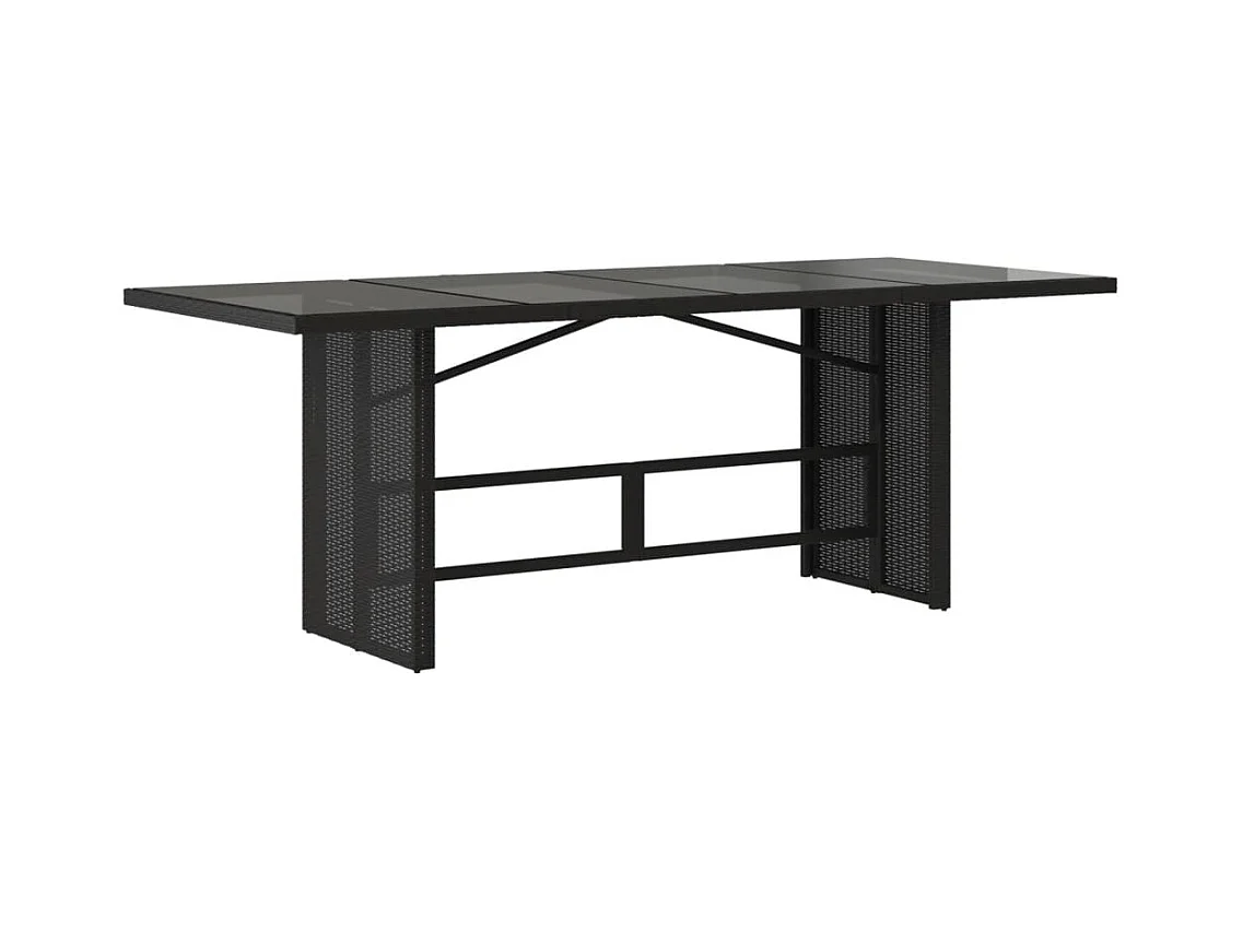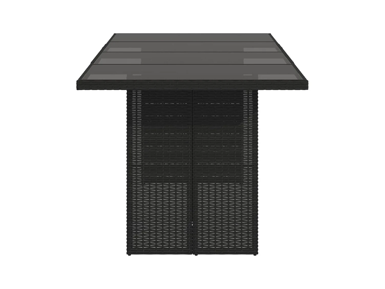 Mesa de jardín superficie de vidrio ratán PE negro 190x80x74 cm