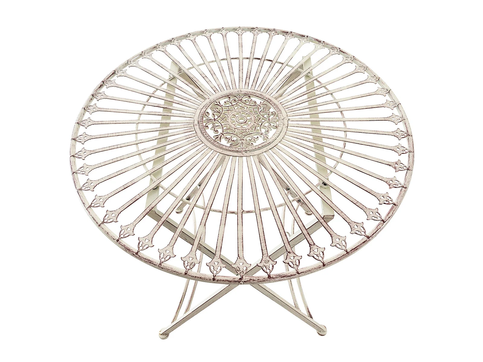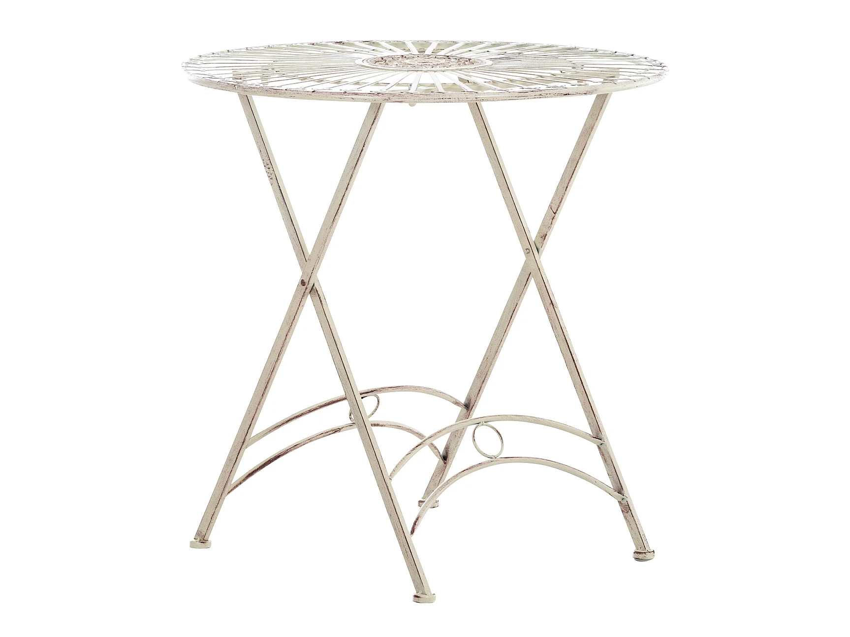 Mesa de jardin terraza balcon estilo rustico plegable metal crema envejecido M10_000715