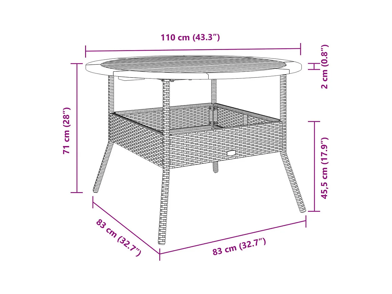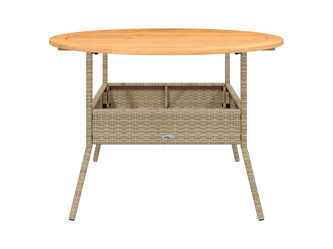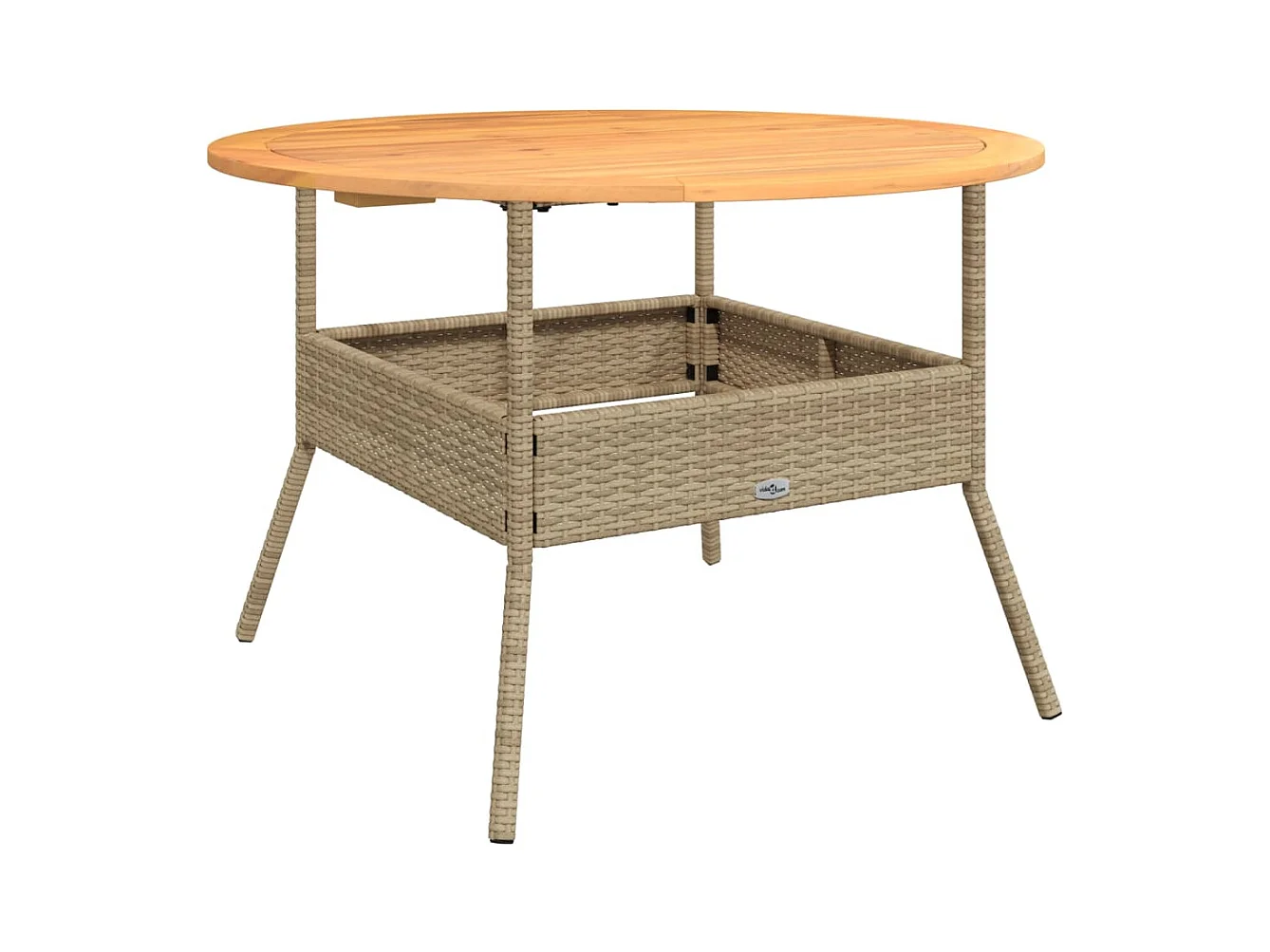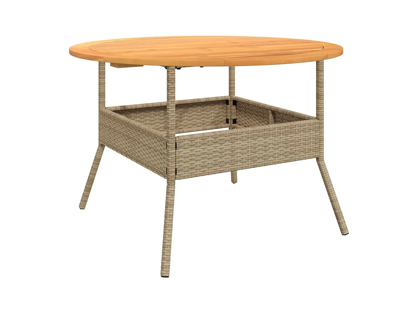 Mesa de jardín beige 110x110x71 cm resina trenzada madera de acacia