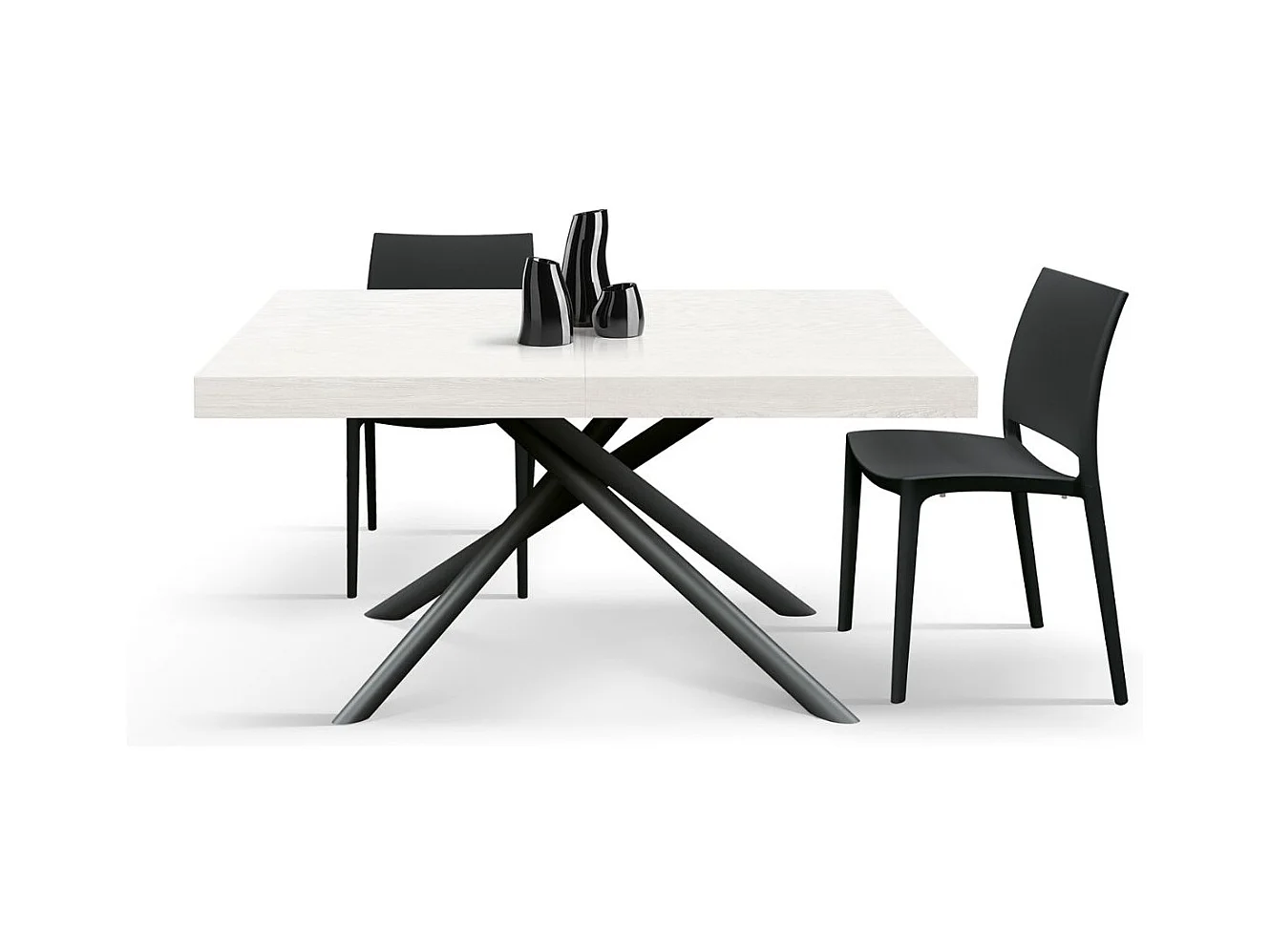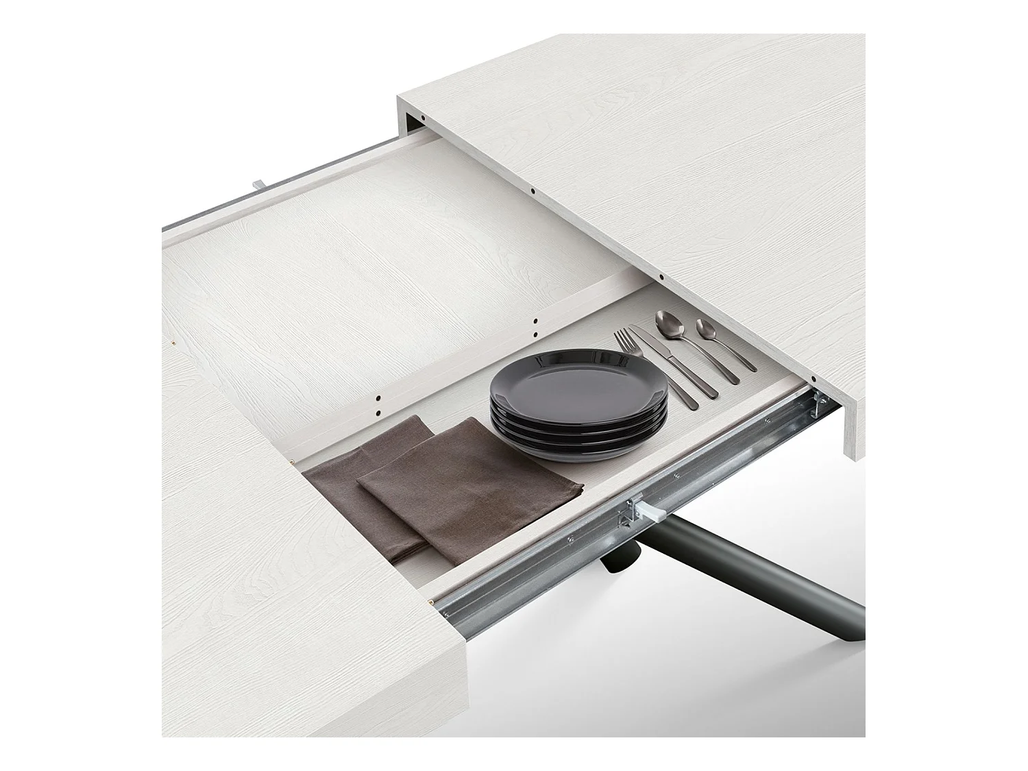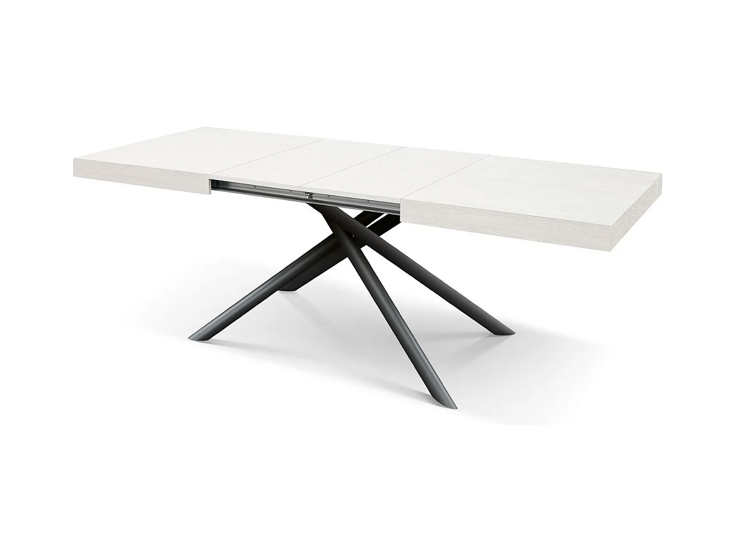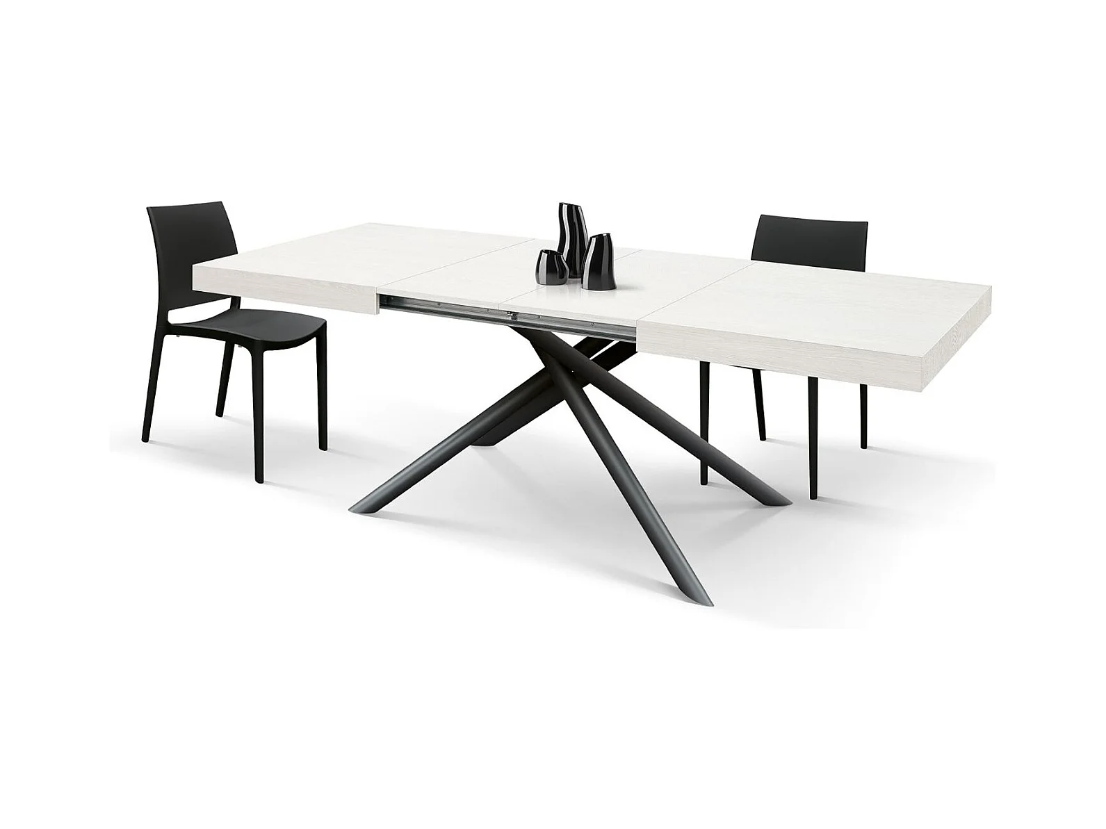 Mesa de madera, acabado blanco, base de metal antracita, 180×90–260×90 cm - CARRARA
