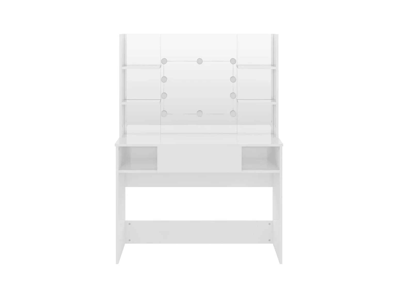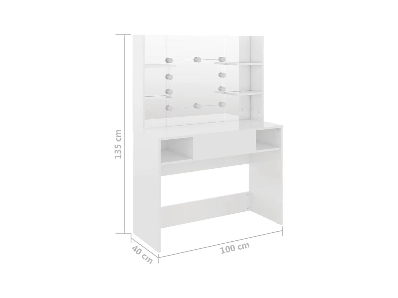 Tocador de maquillaje luces LED MDF blanco brillo 100x40x135 cm ES583915