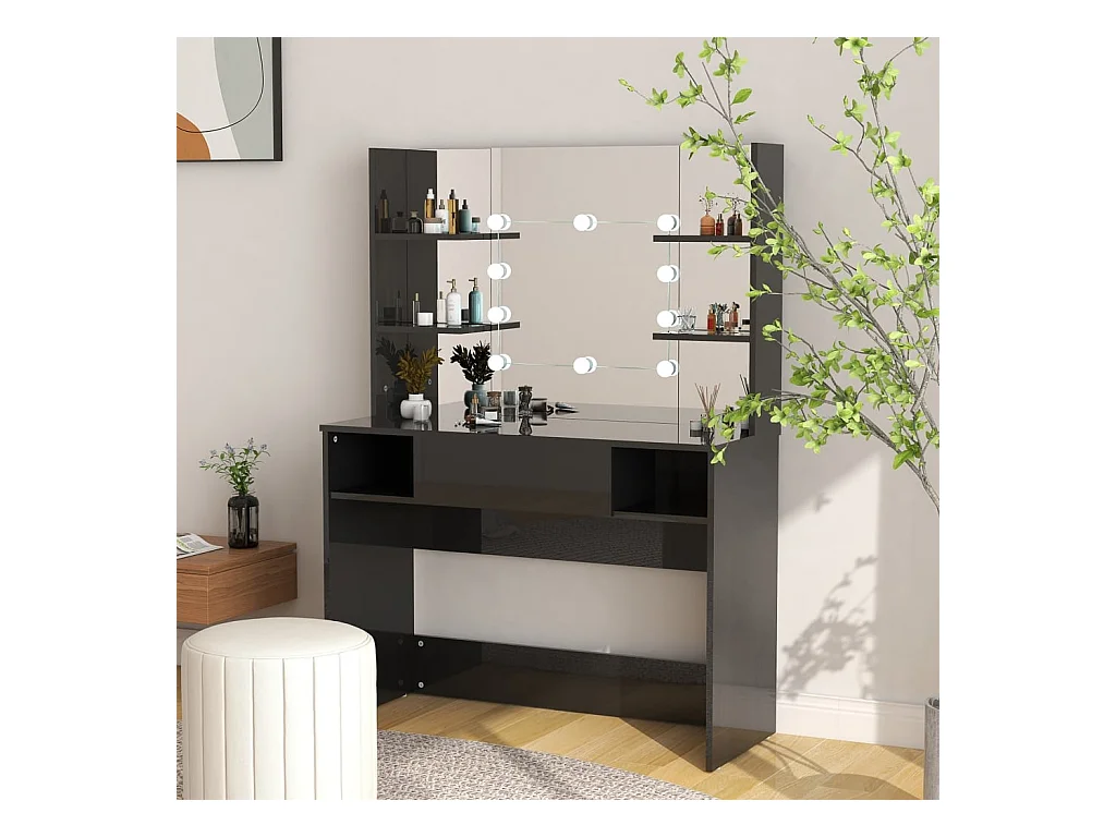 Mesa de maquillaje con iluminación LED MDF Negro brillante
