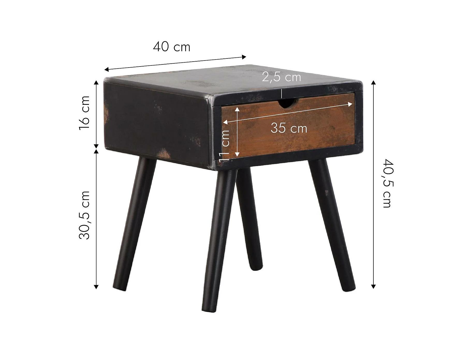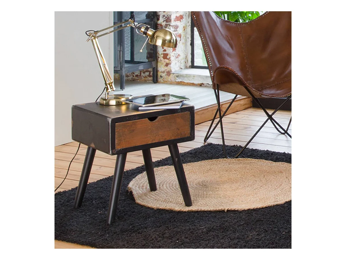 Mesa de noche de madera maciza Hollywood con almacenamiento - Estilo industrial