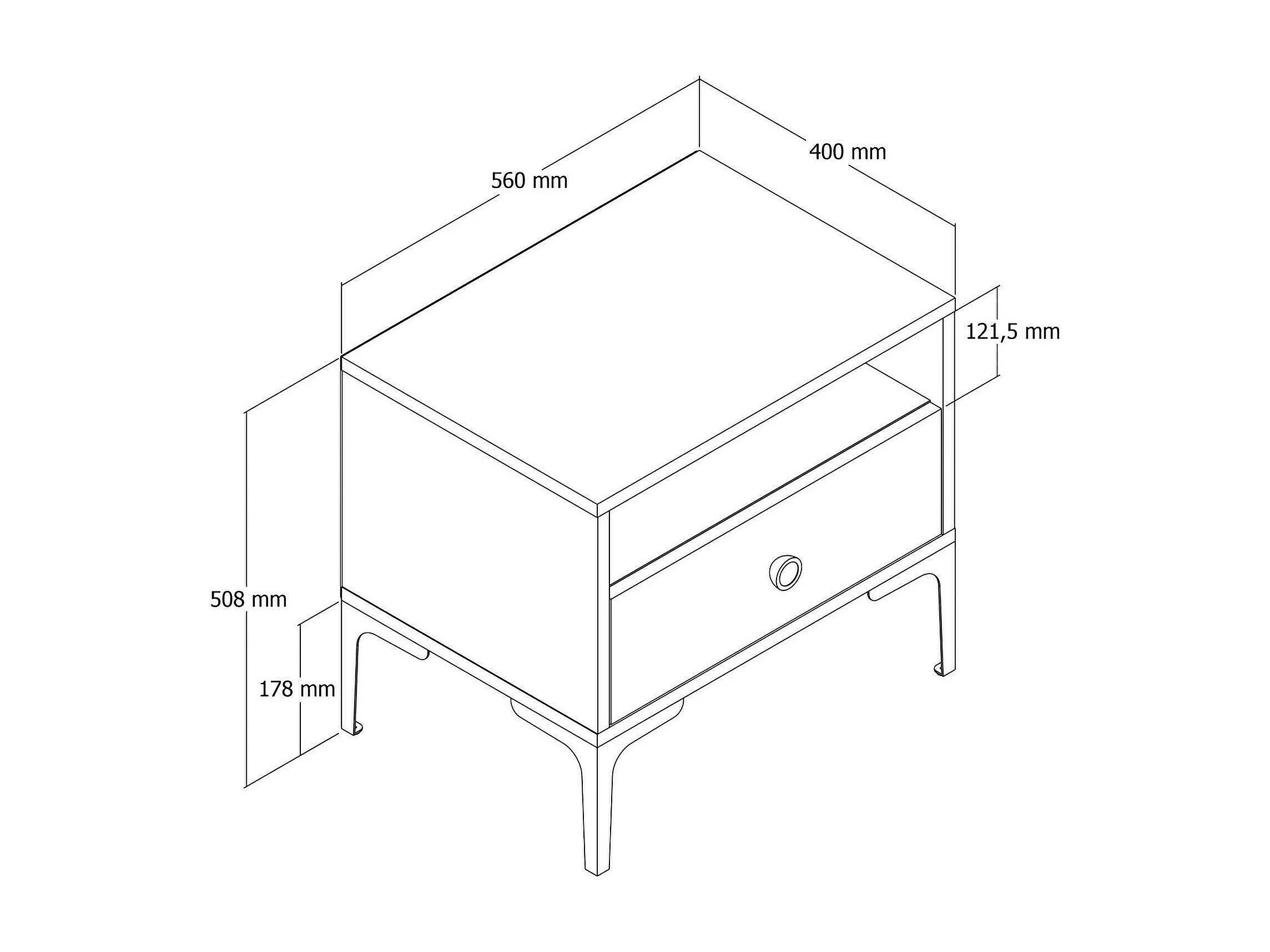 Mesa de noche Dpidon, Cómoda baja, Mesilla de noche, Estante de la cama, 56x40h51 cm, Nogal y Mármol Blanco