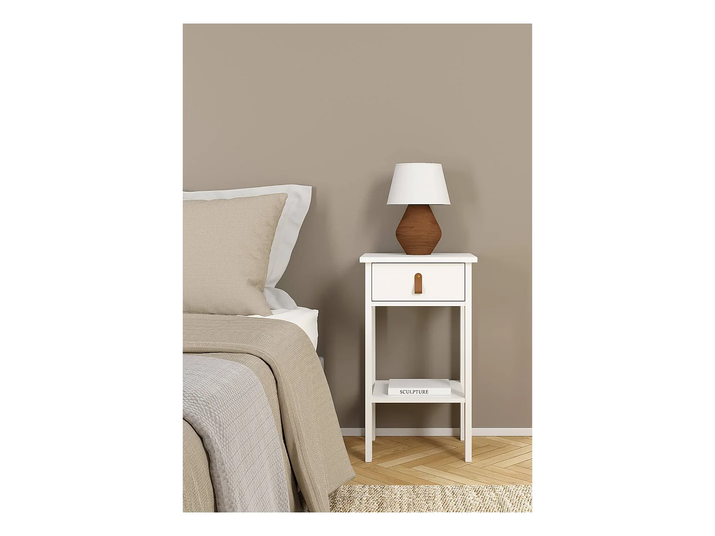 Mesa de noche Drugan, Cómoda baja, Mesilla de noche, Estante de la cama, 40x34 h48 cm, Blanco