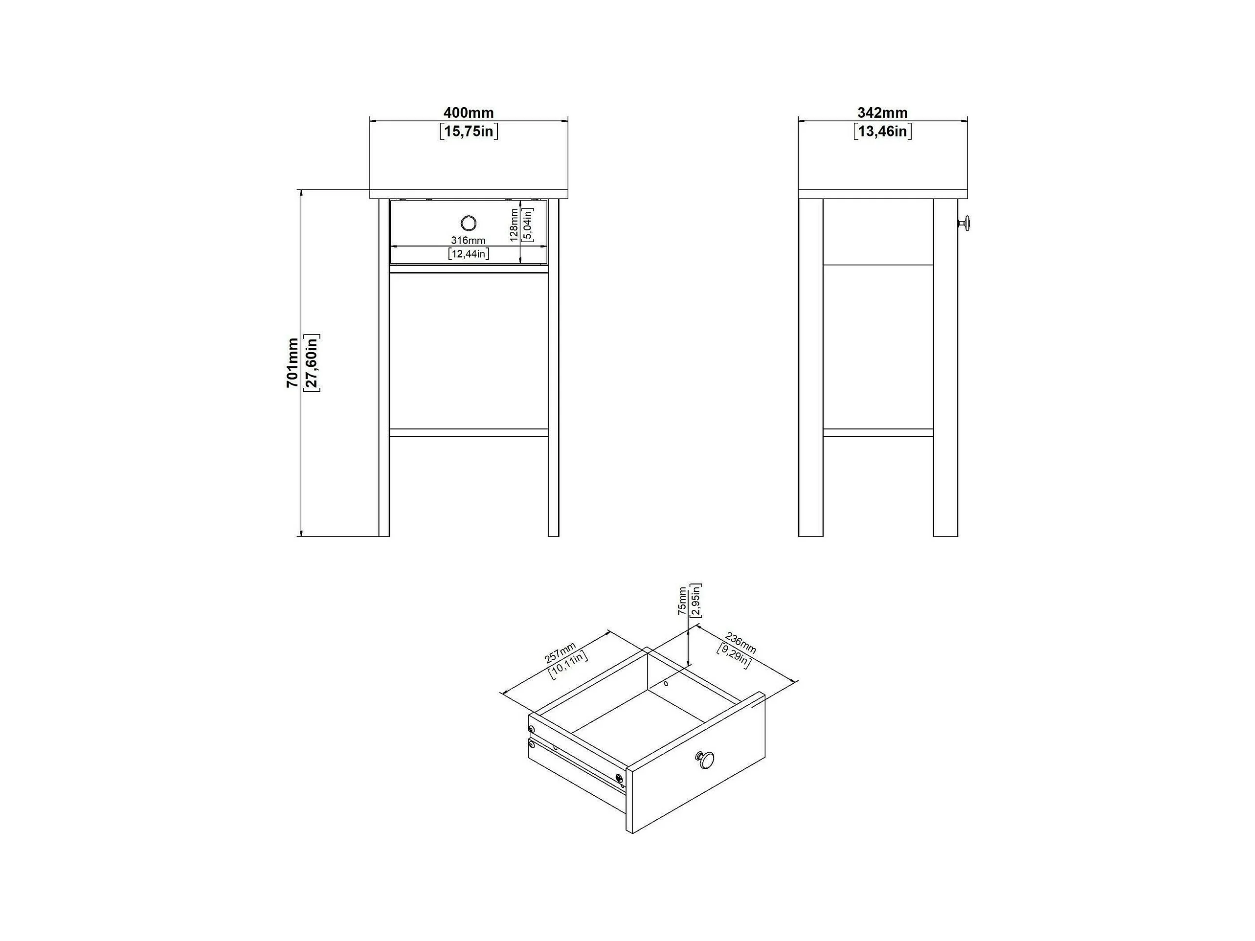 Mesita de noche Catinaccio, Mesita de noche, Cómoda baja con 1 cajón, 40x33h42 cm, Blanco y Roble