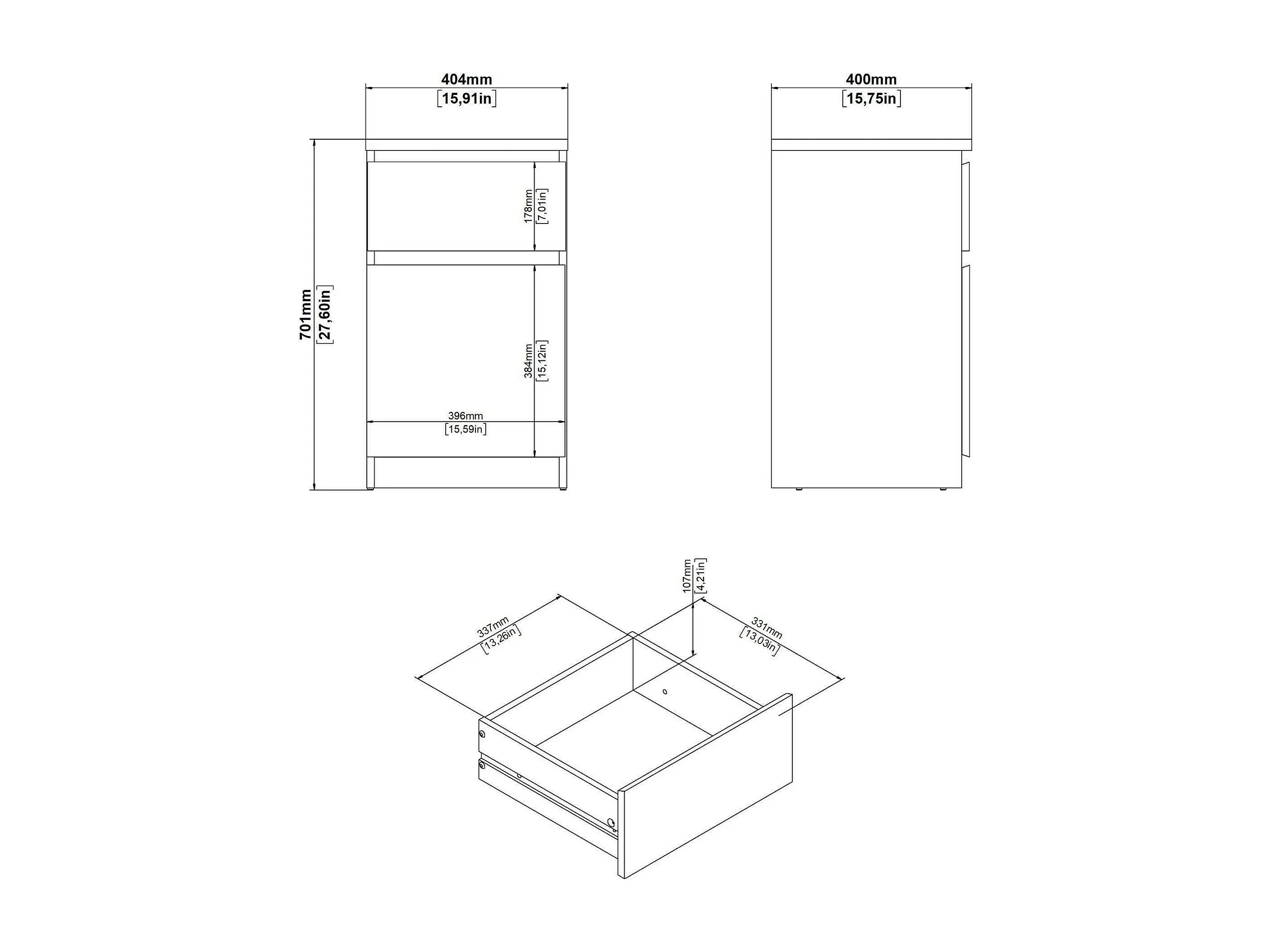 Mesa de noche Drugan, Cómoda baja, Mesilla de noche, Estante de la cama, 40x34 h48 cm, Blanco