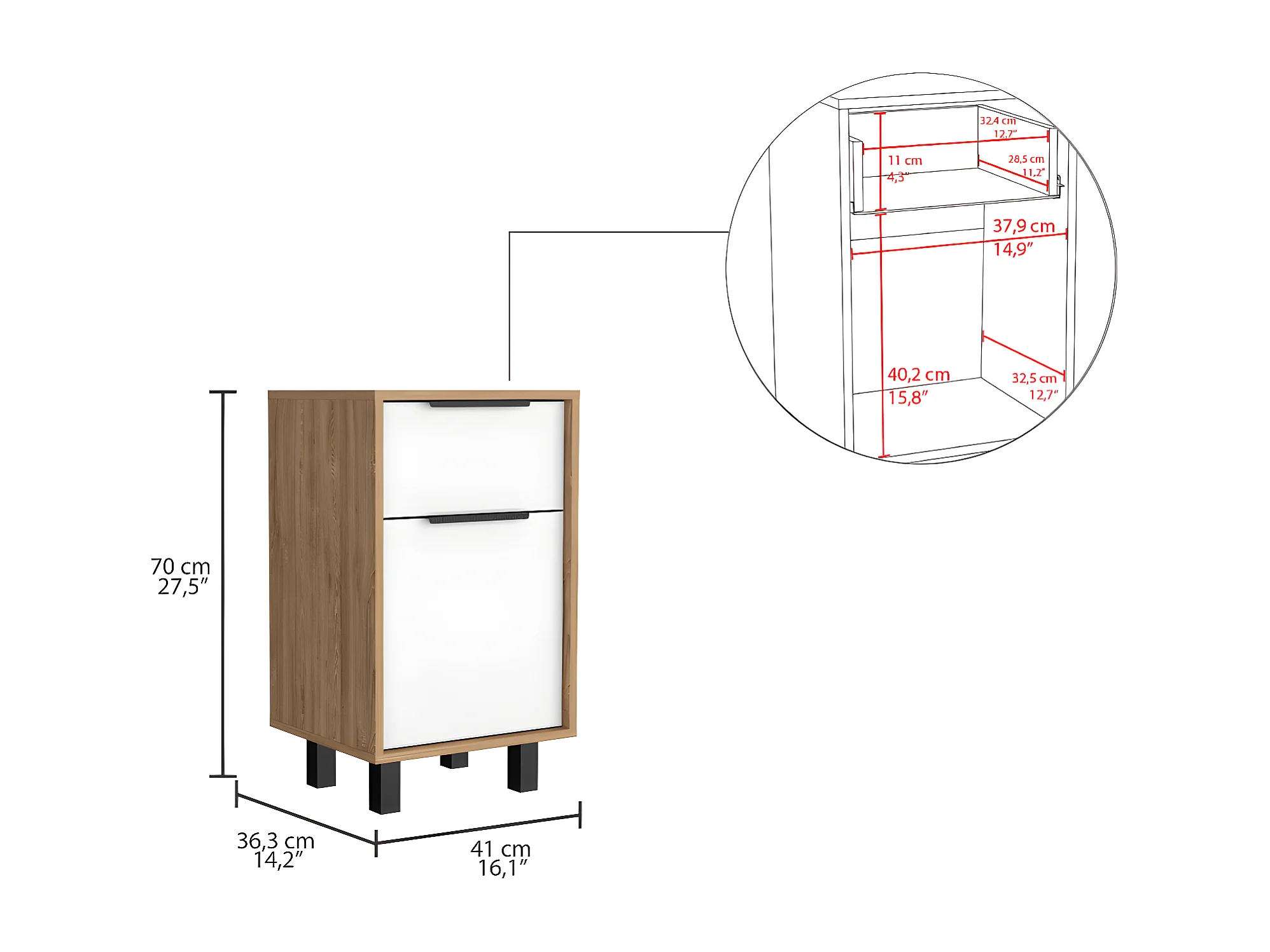 Mesa de noche Kaia Z, con un cajón 41.2CM L X 36.3CM D X70CM A Miel / Blanco