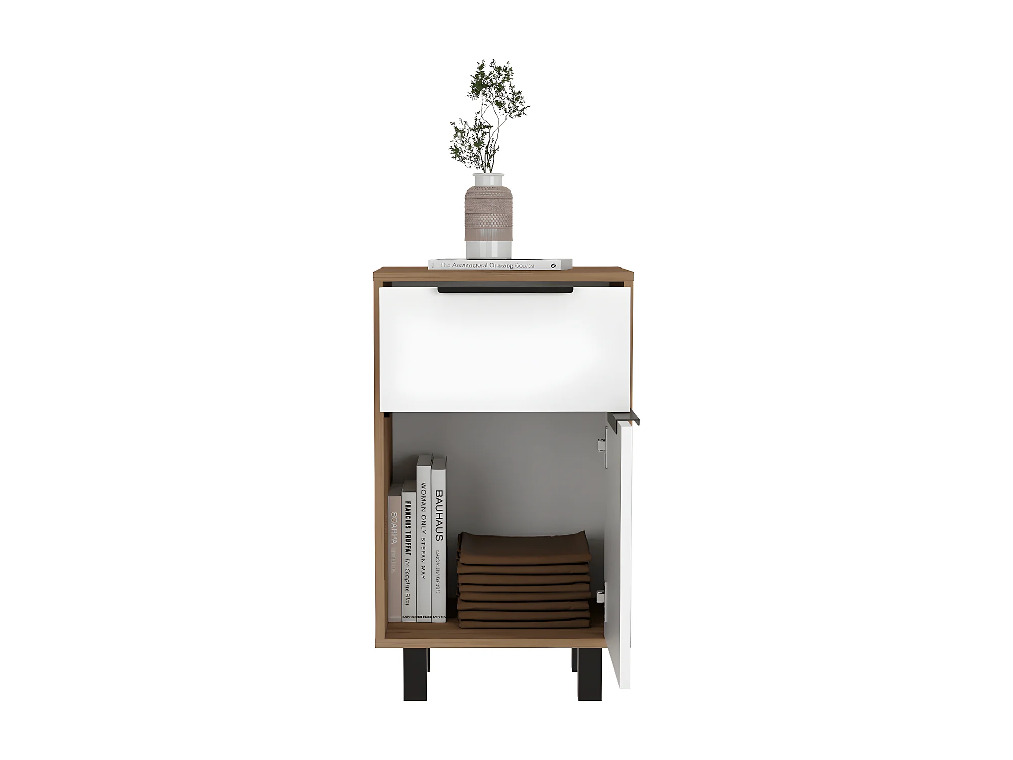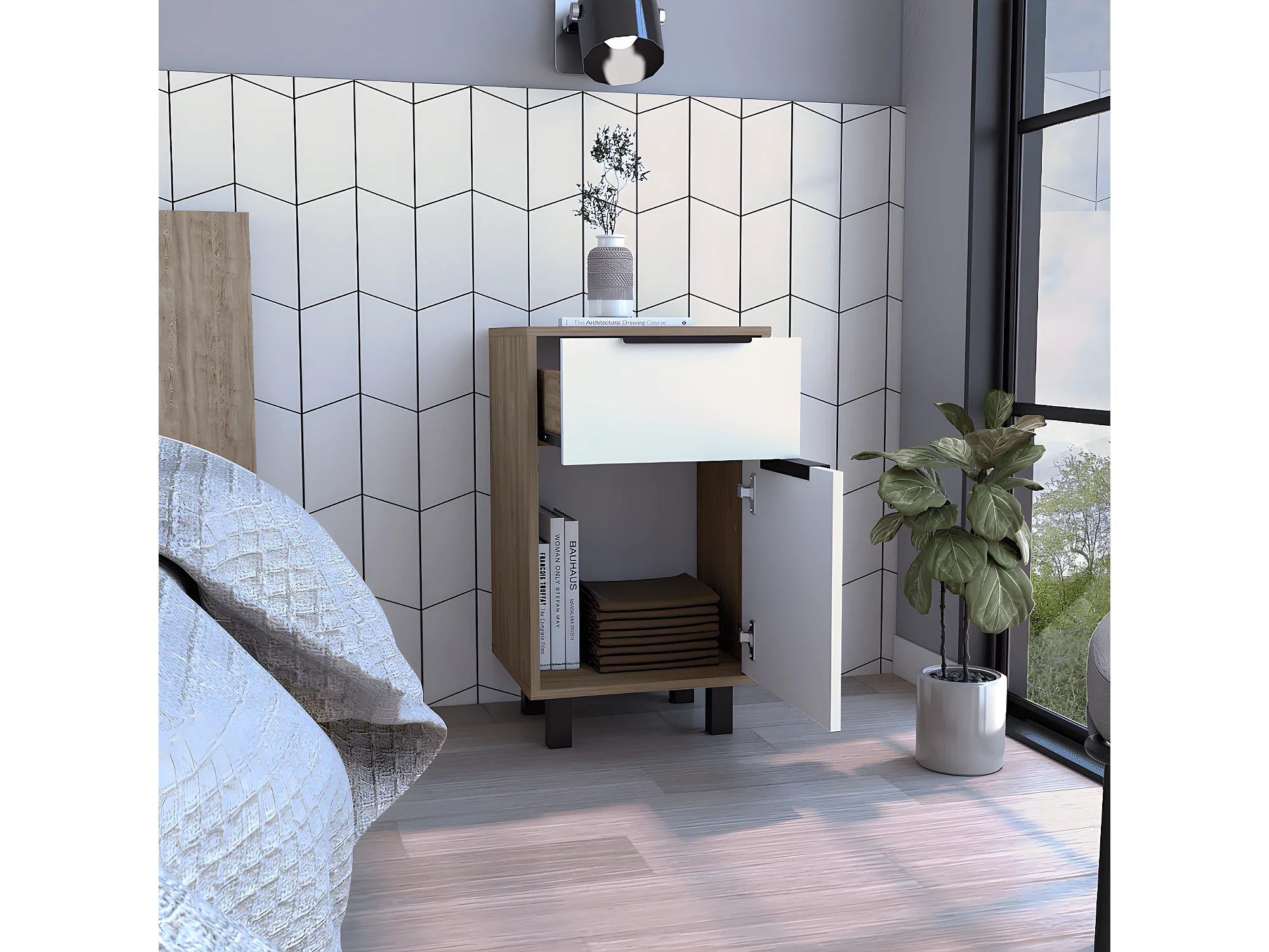 Mesita de noche 1 cajón 1 compartimiento Hella Madera
