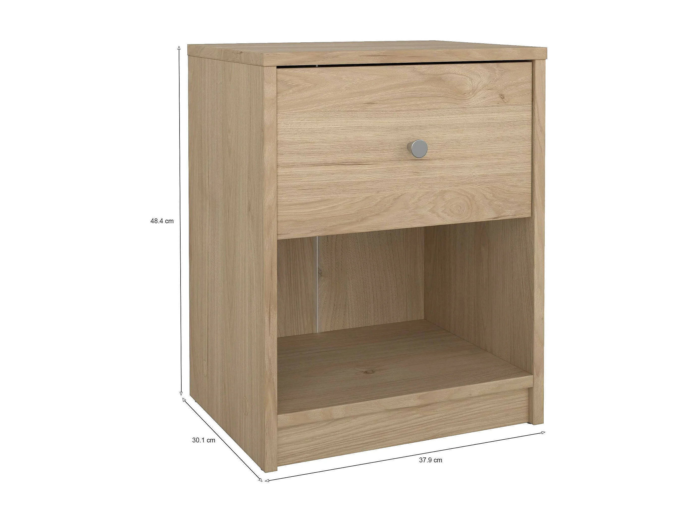 Mesa de noche Druss, Cómoda baja, Mesilla de noche, Estante de la cama, 38x36 h48 cm, Roble