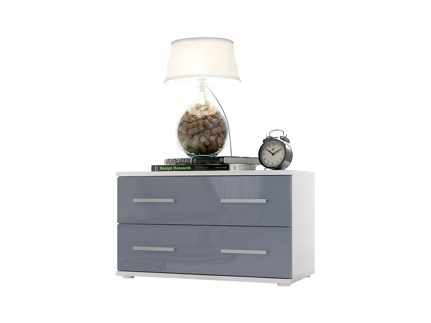 Mesa de noche Kioto, Cuerpo en Blanco mate / Frontal en Color Gris alto brillo