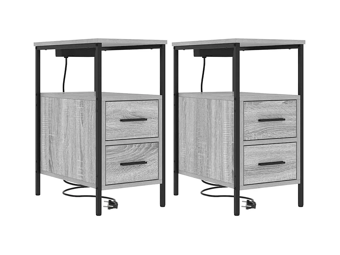 Mesita de noche | Mesilla de noche 2 uds. madera ingeniería gris Sonoma 50x41x65 cm